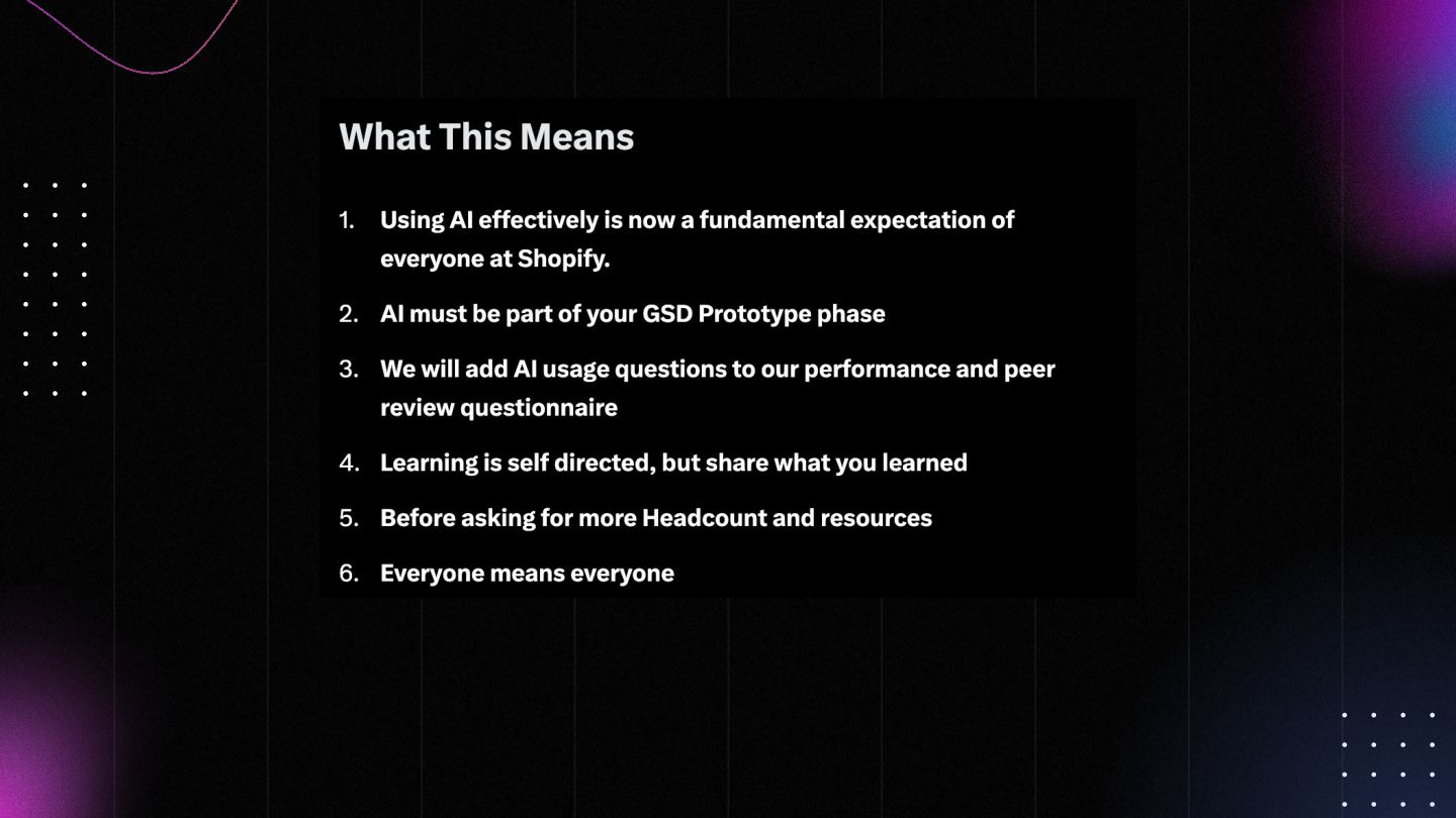 At Shopify, "Reflexive AI usage is now a baseline expectation" . This mandate doesn't just apply to developers; it applies to everyone, including Design, Content, Support, Ops, and Legal . While ChatGPT and Gemini are a good start , they often lack the deep, specific knowledge needed to be truly effective within a company.