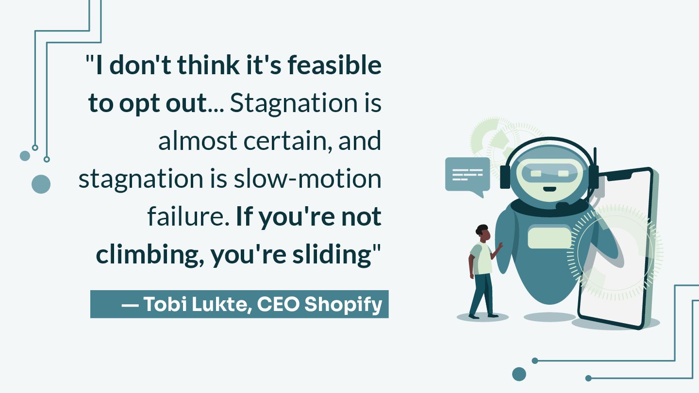 We will cut through the noise and focus on the undeniable truths: startups are doing more with less , non-devs are launching MVPs , and at companies like Shopify, "reflexive AI usage is now a baseline expectation".