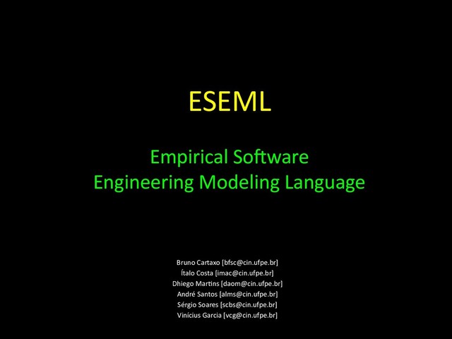 ESEML Empirical Softare Engineering Modeling Language Bruno Cartaxo [