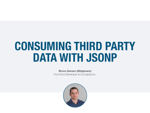In this talk, Bruno Genero(@bfgenaro) will go through how to request data from a server in a different domain and not to worry about the “Same-origin policy” using the JSONP technique.