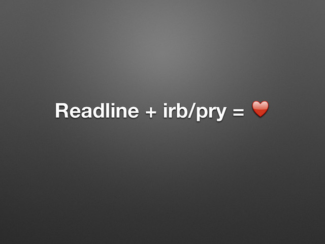 + ruby (with ruby-build) = it just works • .inputrc tweak for “backward-kill-word” set editing-mode emacs $if mode=emacs C-w: backward-kill-word $endif