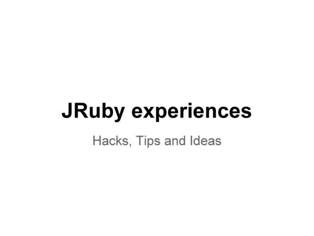 discovery" • Add your directories in the classpath (log4j, configuration, etc) • For best performance wrap your Java objects instead of using Ruby objects (see JrJackson)