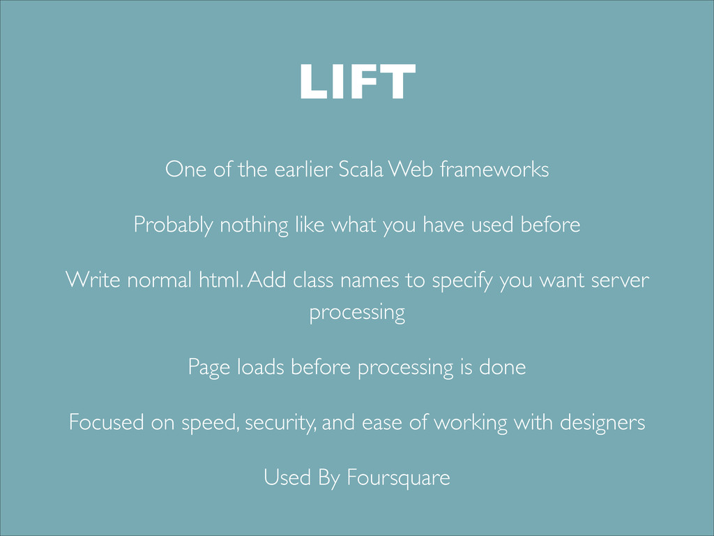 like what you have used before Write normal html. Add class names to specify you want server processing Page loads before processing is done Focused on speed, security, and ease of working with designers Used By Foursquare