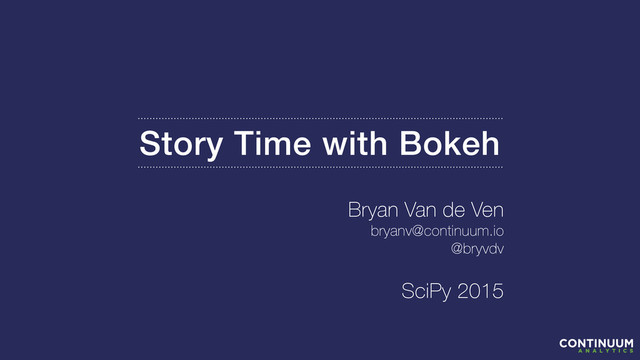 backend) • New Charts / Faceting (in progress) • Validation (started in 0.9.1) • Bokeh App Authoring • Server revamp, Extensibility To be continued… (continued)