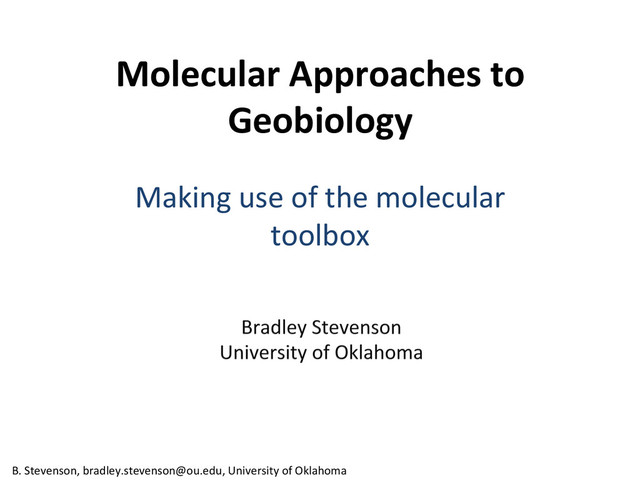 This is an introductory lecture on the use of molecular approaches to study microbial assemblages focused on students of the International Geobiology Course in 2014.