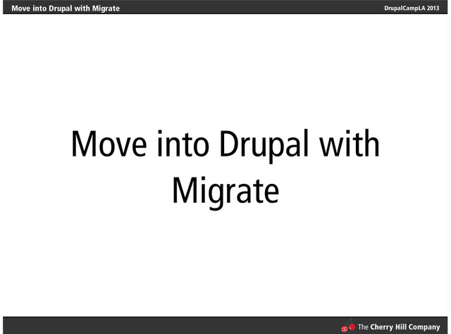Let migrate know about your module (hook) Build a migration class (constructor) Provide a description Provide information where content is coming from (Source) Provide information where content is going to get saved (Destination) Map fields from Source to Destination • • • • • •