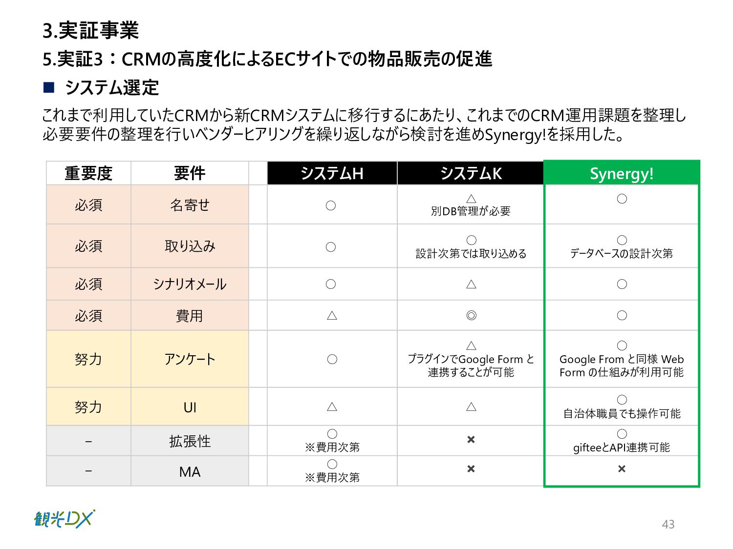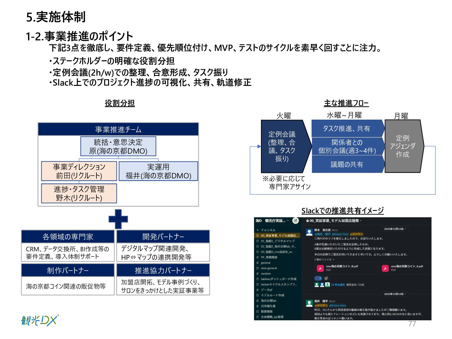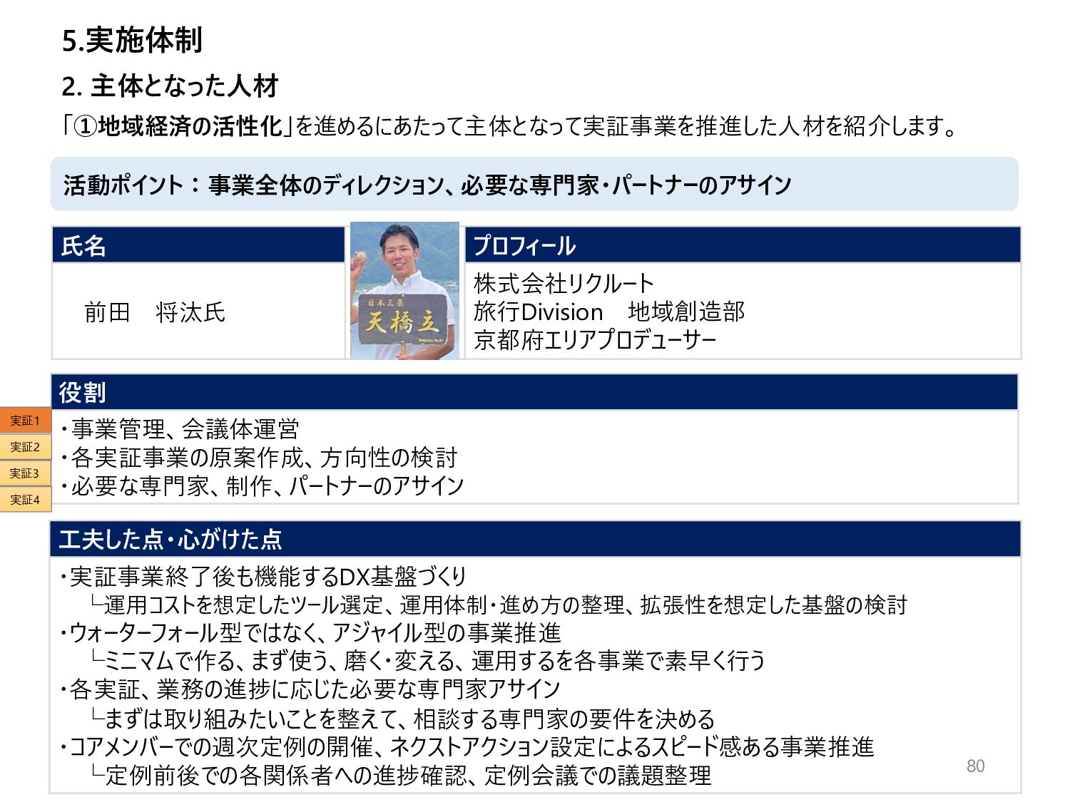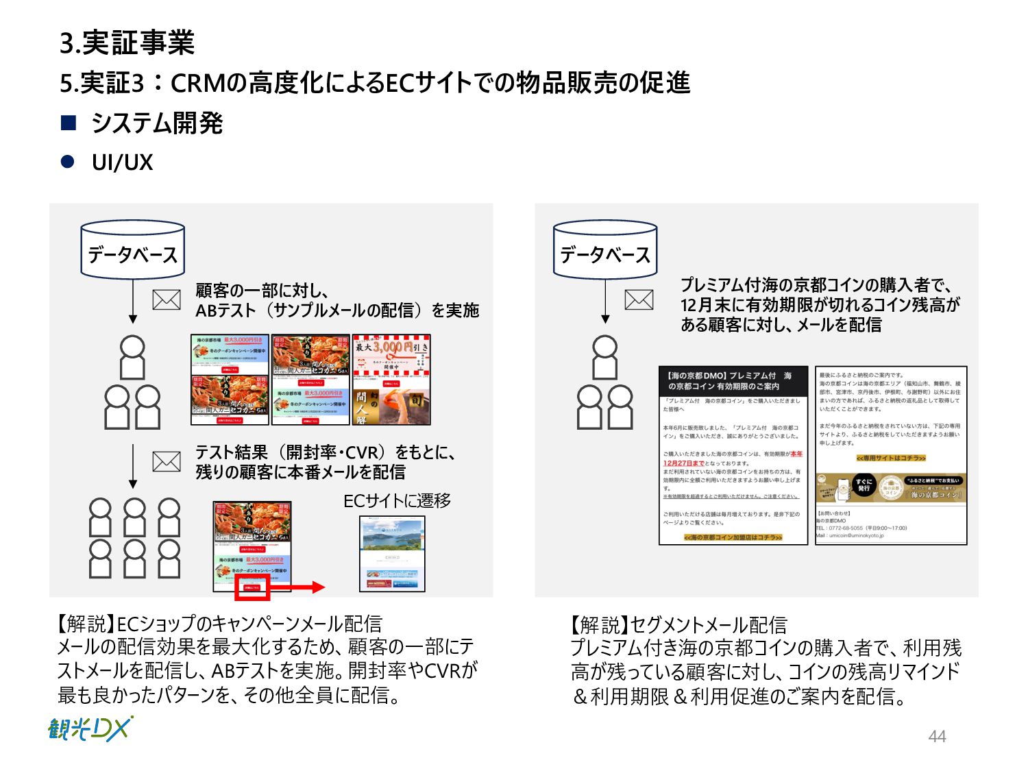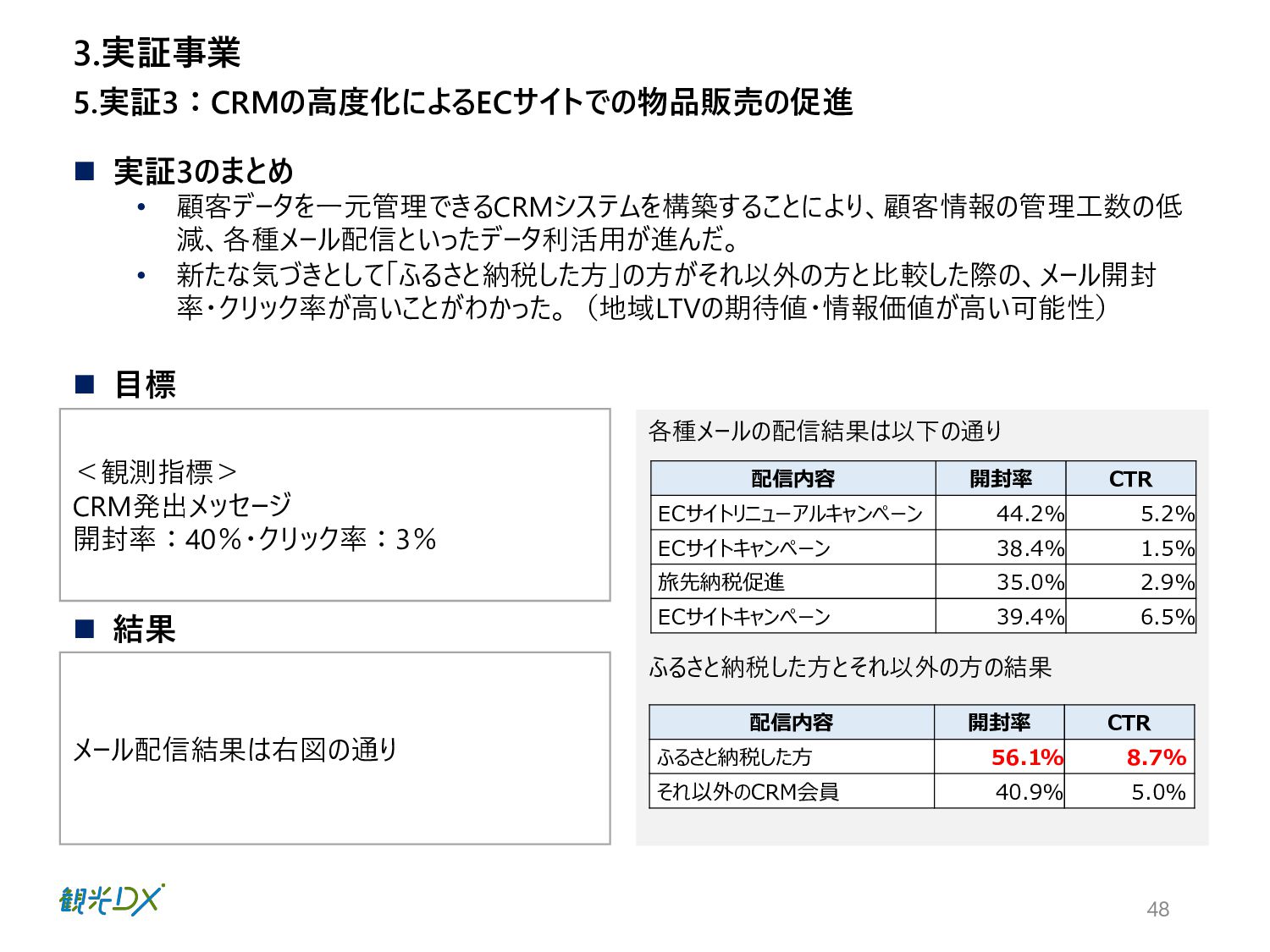 \10,765,000 1695% 宮津市 \250,000 \5,030,000 2012% 伊根町 \930,000 \3,605,000 388% ビジネス客中⼼エリア 舞鶴市 \615,000 \950,000 154% 福知⼭市 \40,000 \400,000 1000% 宿泊施設少数エリア 与謝野町 \145,000 \280,000 193% 綾部市 \40,000 \70,000 175% 33 4.実証1:海の京都コインのモデル店舗づくり 3.実証事業 【考察②】7⾃治体のふるさと納税寄附について 海の京都を構成する7⾃治体の、海の京都コインを返礼品にしたふるさと納税額を実証事業前後で⽐較した。 寄附⾦額については全ての⾃治体で寄附額がアップした結果となった。 しかし、最多寄附額の⾃治体(1076.5万円)と最⼩寄附額の⾃治体(7万円)との間には100倍以上の差がある。 海の京都の中でも、⾼級宿泊施設等の事業者数が多い観光成熟エリア(京丹後市・宮津市・伊根町)、ビジネス客中 ⼼エリア(舞鶴市・福知⼭市)、宿泊施設少数エリア(与謝野町・綾部市)等の各地域の観光特性と「観光をフック にしたふるさと納税」との相性が影響しているものと思われる。 本事業中のアプローチは観光成熟エリアに特に効果があったと考えられ、各地域の観光特性にあわせた戦略を検討する余 地がある。また、海の京都以外で同様の取り組みを検討する際にも予め地域の観光特性を考慮することが重要と考える。 海の京都コインを返礼品としたふるさと納税_⾃治体別寄附額(実証事業期間中の寄附額 降順)