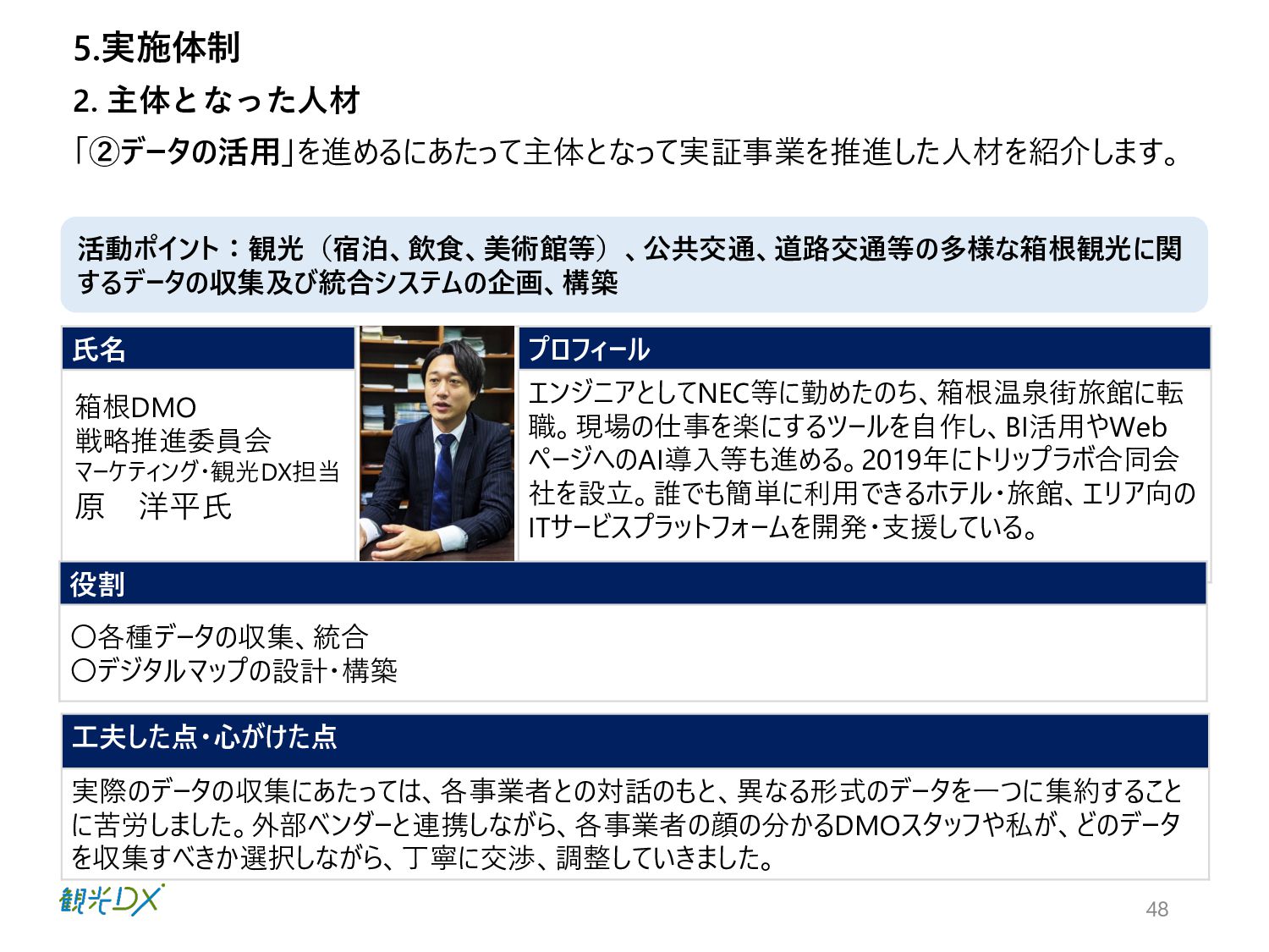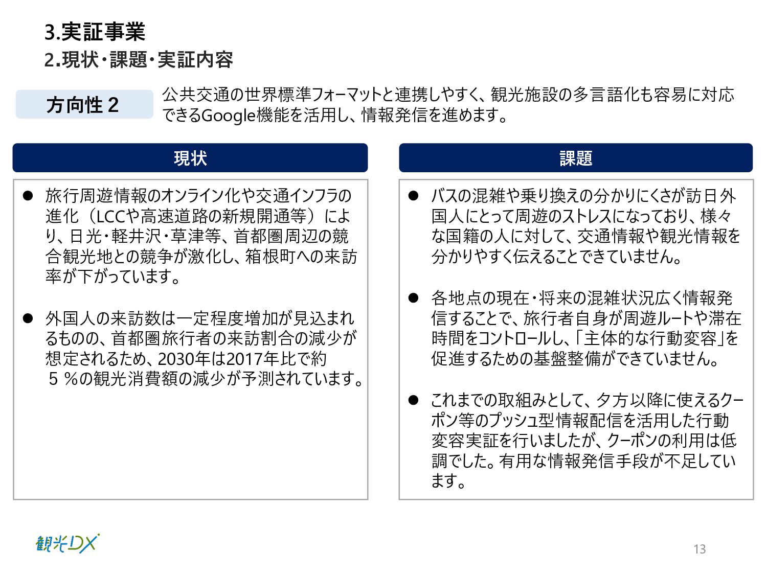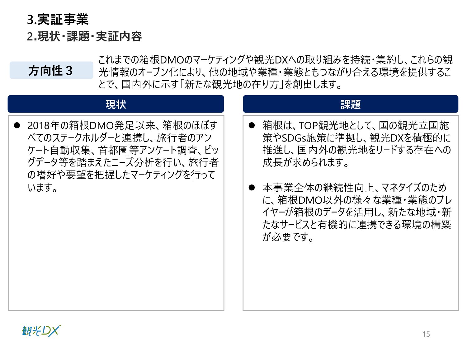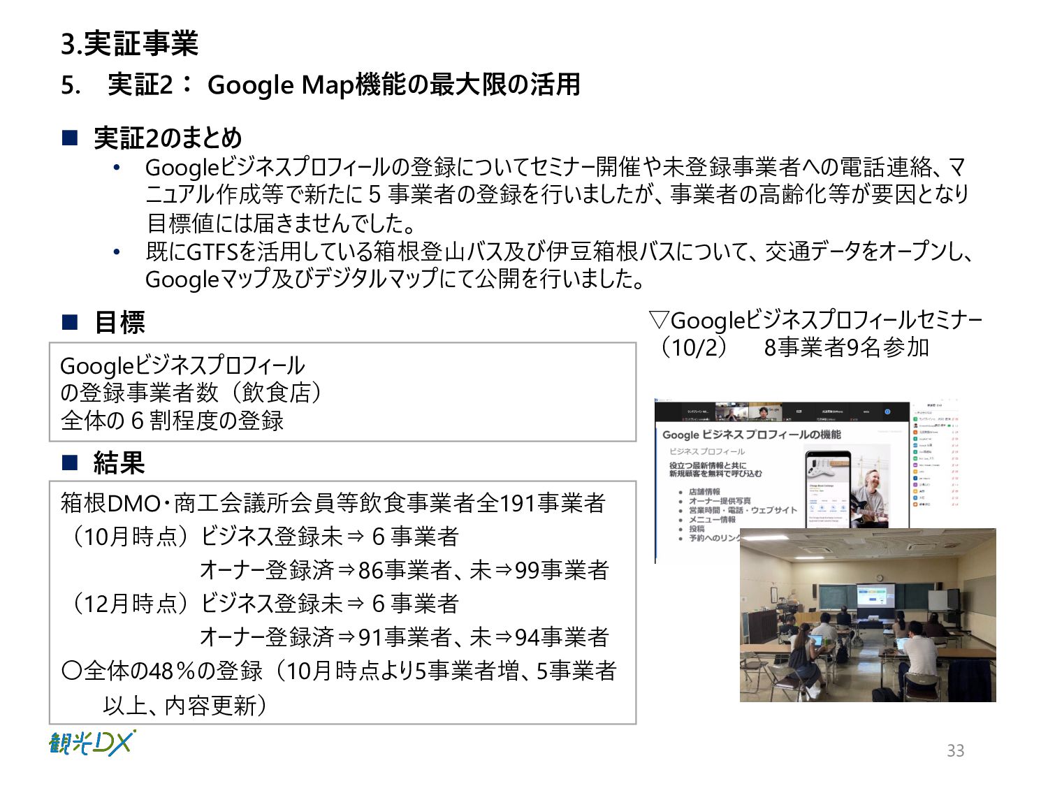 1,543 1,577 1,912 2,063 2,070 2,114 2,867 0 500 1,000 1,500 2,000 2,500 3,000 3,500 (人) 11⽉6⽇以降のリリース後、町内事 業者への普及啓発、町内webサイ トの発信(約3割)、各施設での旅⾏ 者へのチラシ(約2割)等を通じた直 接発信等により、デジタルマップの利 ⽤者を増加させることができました。 ※11⽉20⽇の週については、⼤⼿ 新聞社で取り上げられ、利⽤者 数が多くなっています。 直接アクセス, 32.9% 箱根DMO及び地 域サイト, 31.1% 地域配布チラシ, 22.3% google, 8.9% その他, 4.8% ▽デジタルマップ利⽤者アクセス元