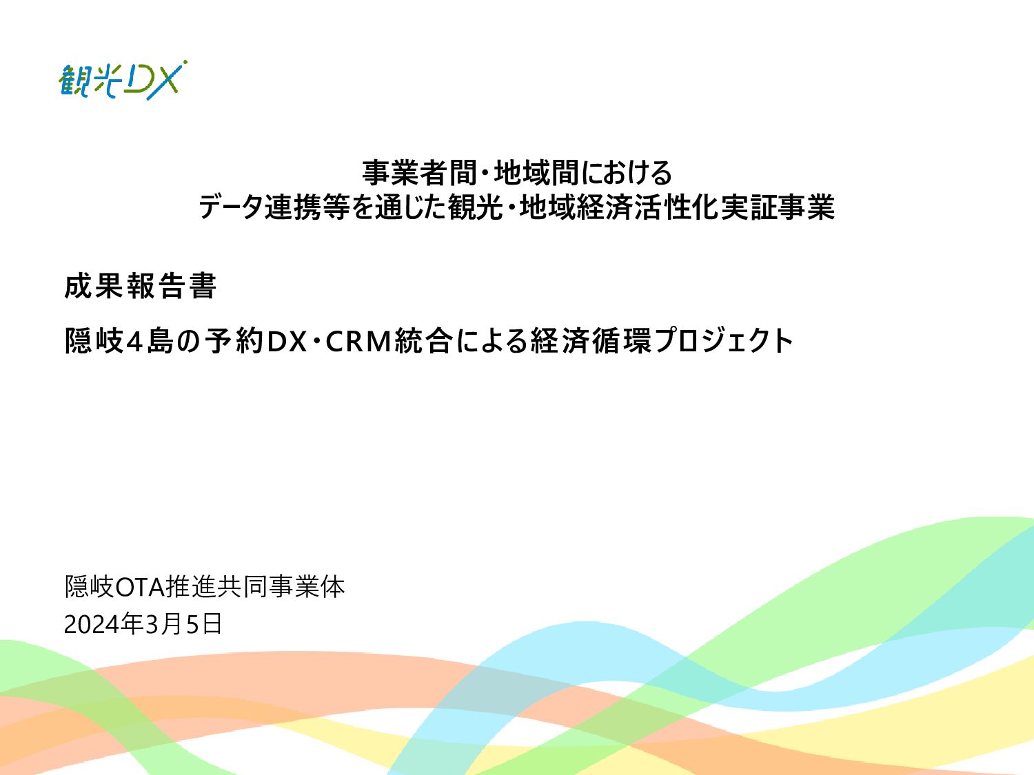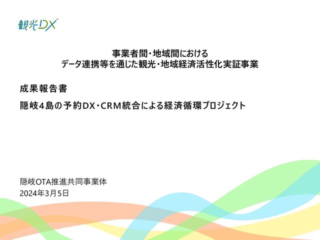 成果報告書 隠岐4島の予約DX・CRM統合による経済循環プロジェクト 隠岐OTA推進共同事業体 事業者間・地域間における データ連携等を通じた観光・地域経済活性化実証事業 2024年3月5日