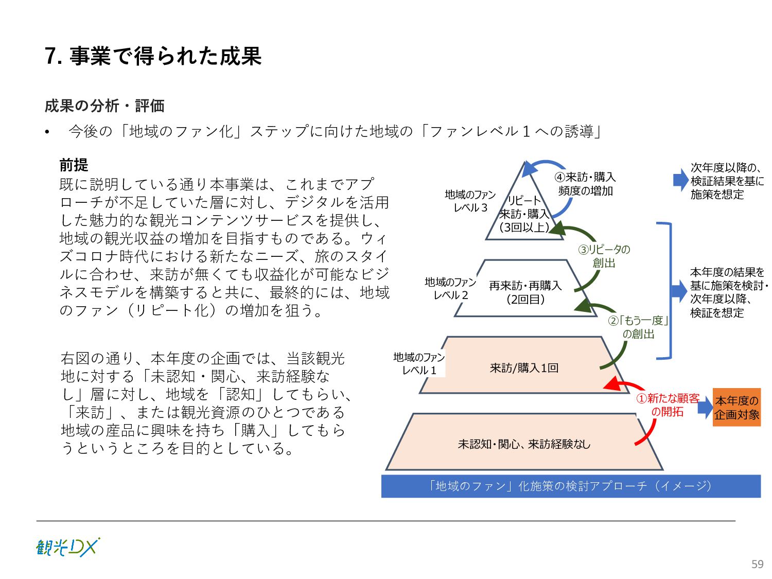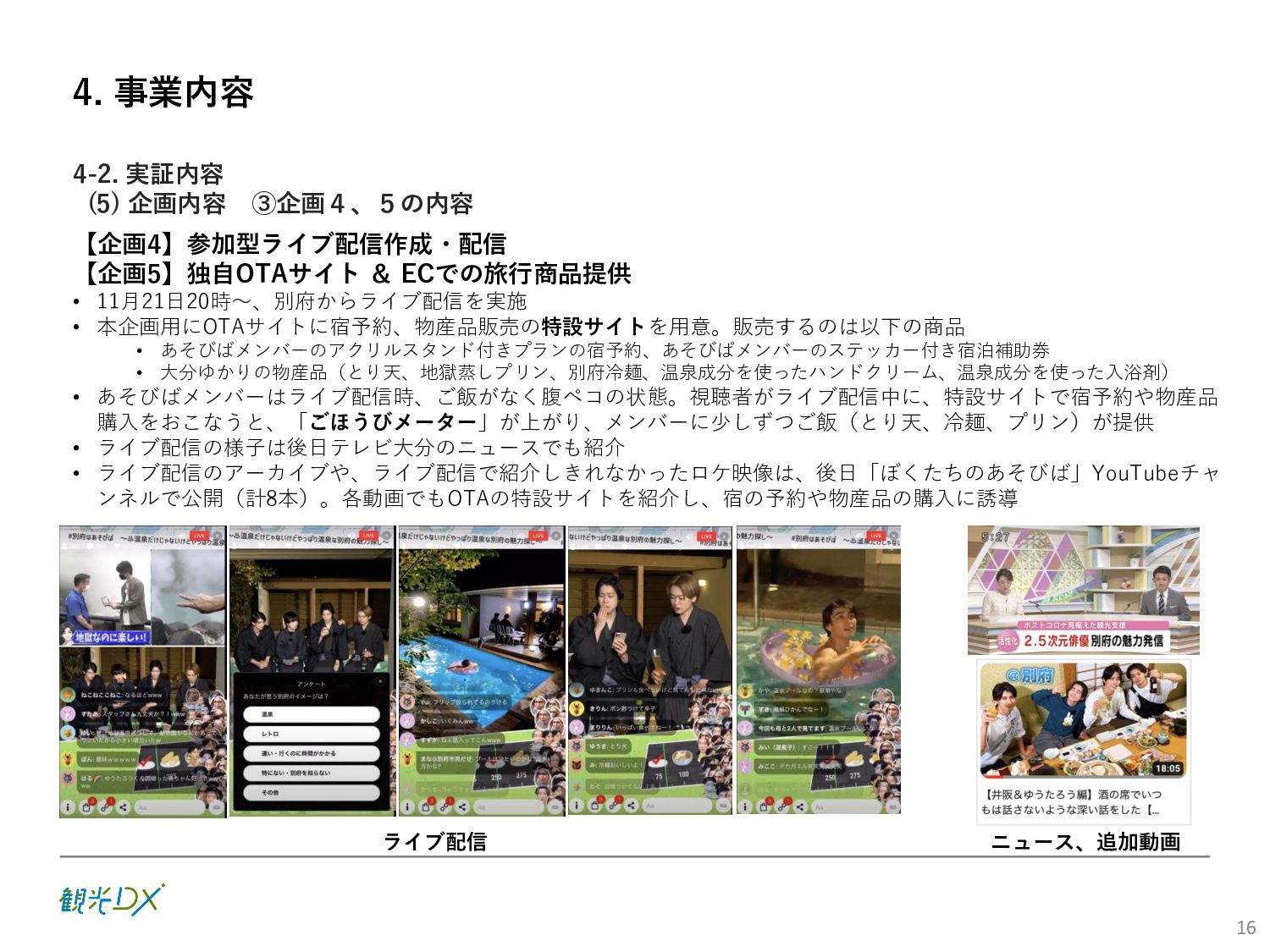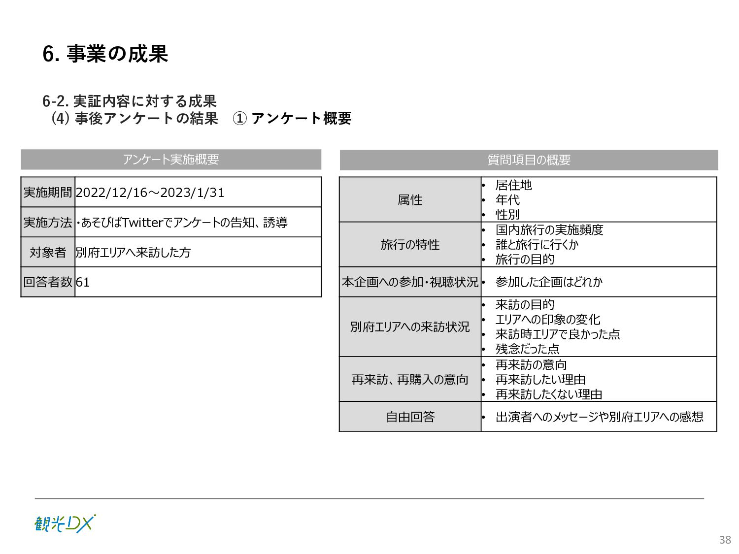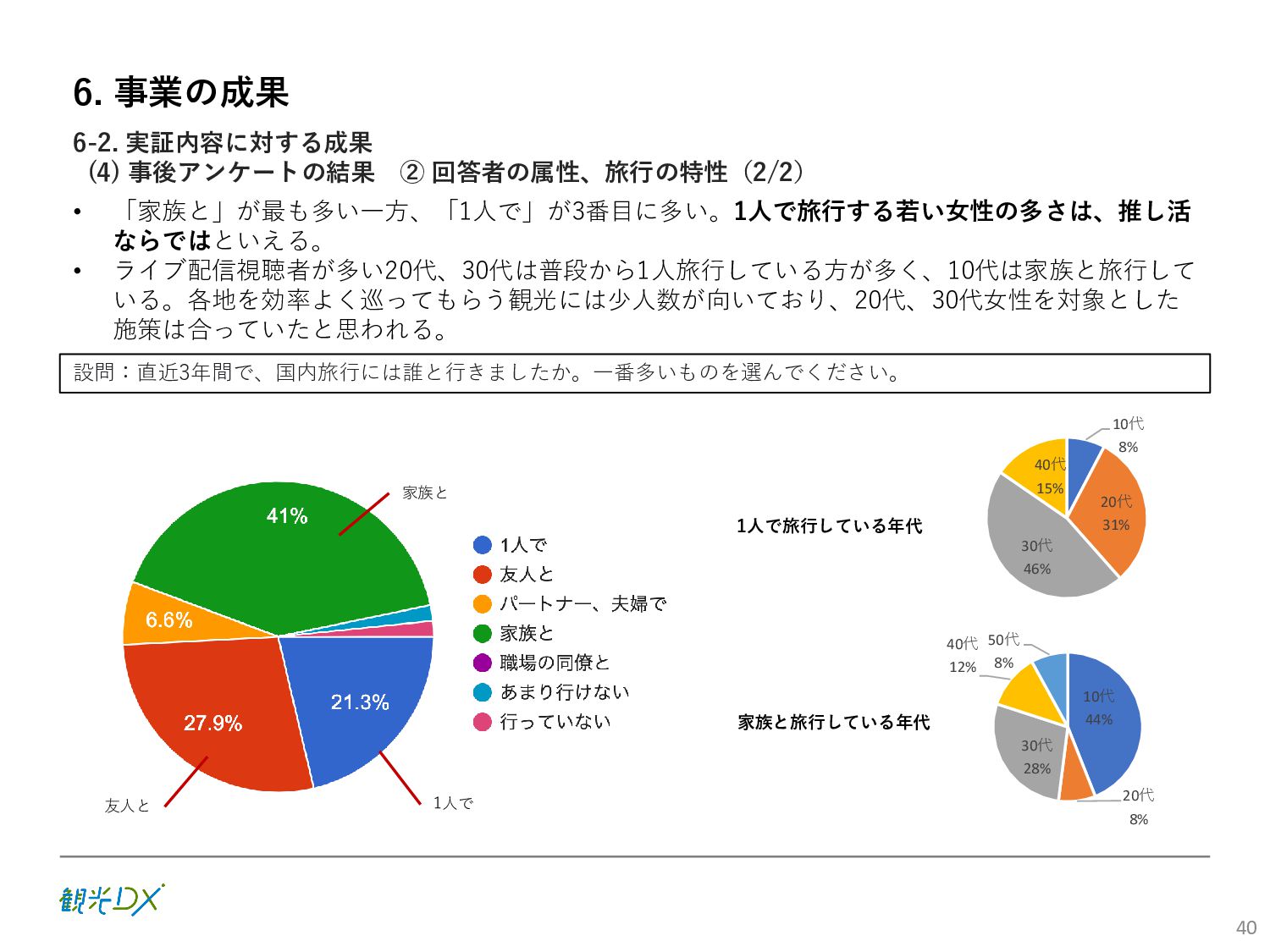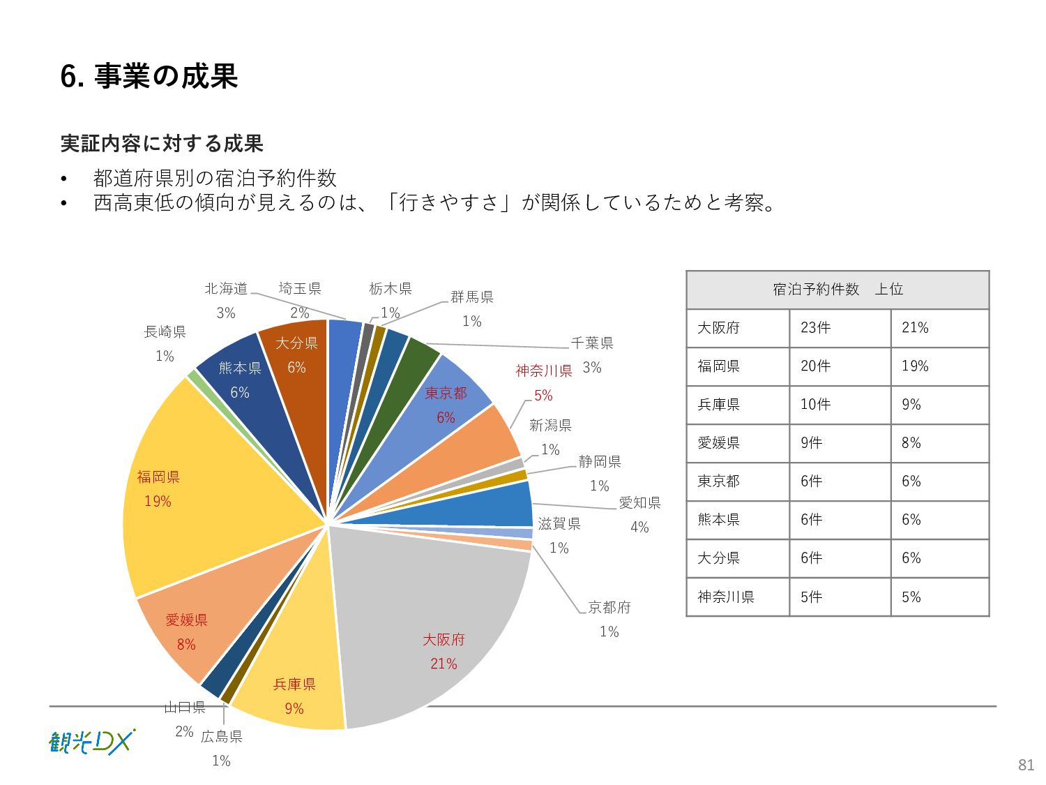 (5)聖地巡礼におけるSNS投稿数:100投稿 10月 11月 12月 1月 合計 目標数値 (累計) 購入件数 達成数値(件) (売上個数+宿泊人数) 0 424 (物342、宿82) 54 (物38、宿16) 29 (物4、宿25) 507 (物384、宿123) 500件 参考:購入人数 (物品購入者数+宿泊人数) 0 285 (物203、宿82) 30 (物14、宿16) 26 (物1、宿25) 341 (物218、宿123) 進捗率(%) 0 85% 96% 101% 101% 100% 平均購入⾦額 達成数値(円) (売上額/購入人数) 0 9,214 14,539 21,373 10,609 5,000円 進捗率(%) 0 184% 291% 427% 212% 100% 売上 達成数値(円) 0 2,625,967 (物1,167,692、宿 1,458,275) 436,157 (物113,757、 宿322,400) 555,704 (物9,404、宿 546,300) 3,617,828 (物1,290,853、宿 2,326,975) 2,500,000円 進捗率(%) 0 105% 122% 145% 145% 100% 11月 12月 1月 合計 目標数値(累計) 達成数値(投稿) 3,972 335 432 4,739 100投稿 進捗率(%) 3,972% 4,307% 4,739% 4,739% 100% 23