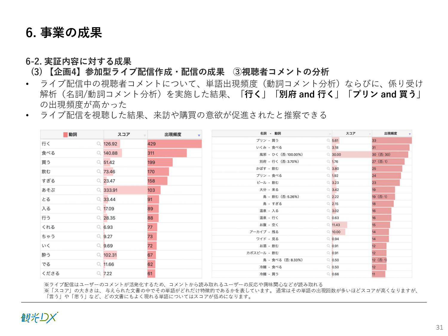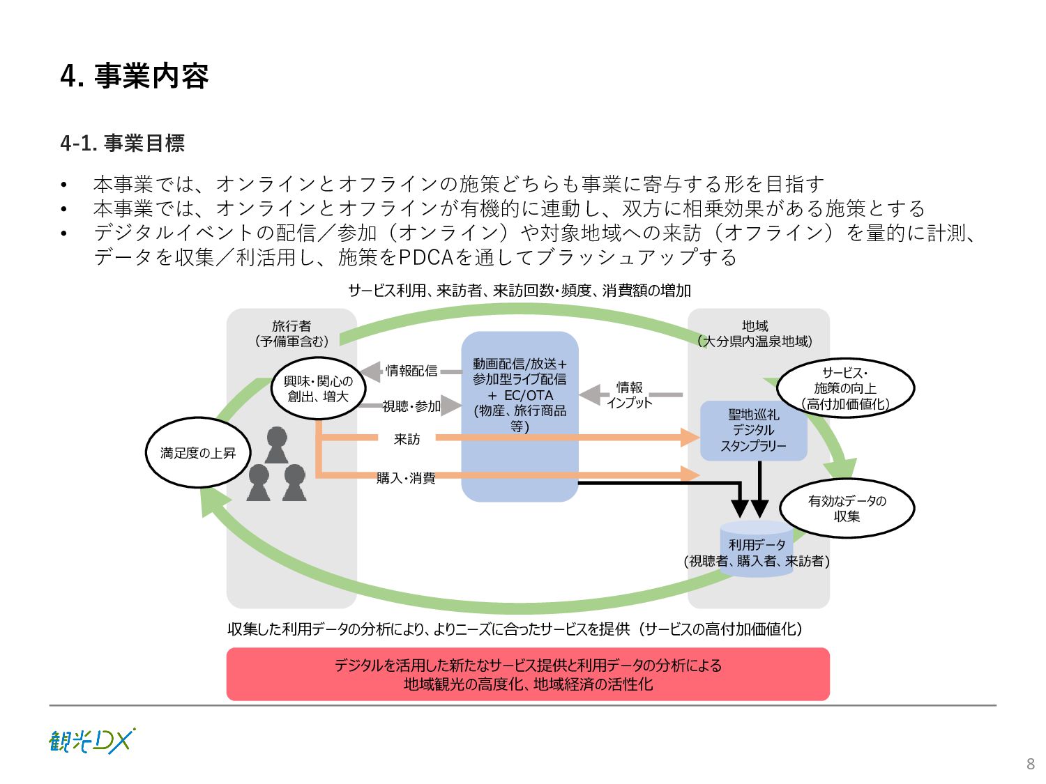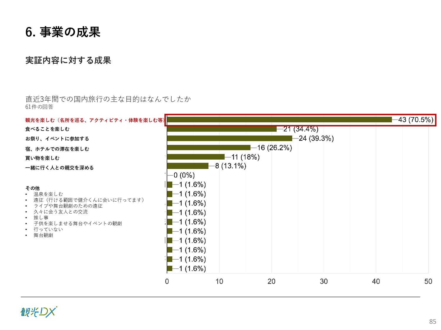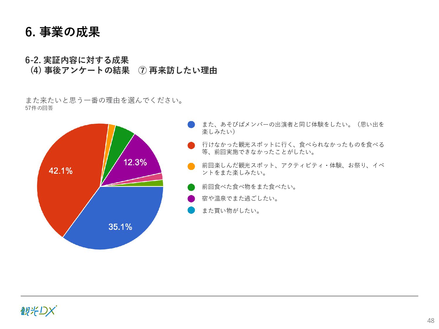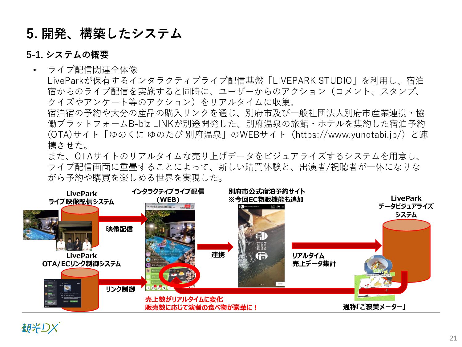 (5)聖地巡礼におけるSNS投稿数:100投稿 10月 11月 12月 1月 合計 目標数値 (累計) 購入件数 達成数値(件) (売上個数+宿泊人数) 0 424 (物342、宿82) 54 (物38、宿16) 29 (物4、宿25) 507 (物384、宿123) 500件 参考:購入人数 (物品購入者数+宿泊人数) 0 285 (物203、宿82) 30 (物14、宿16) 26 (物1、宿25) 341 (物218、宿123) 進捗率(%) 0 85% 96% 101% 101% 100% 平均購入⾦額 達成数値(円) (売上額/購入人数) 0 9,214 14,539 21,373 10,609 5,000円 進捗率(%) 0 184% 291% 427% 212% 100% 売上 達成数値(円) 0 2,625,967 (物1,167,692、宿 1,458,275) 436,157 (物113,757、 宿322,400) 555,704 (物9,404、宿 546,300) 3,617,828 (物1,290,853、宿 2,326,975) 2,500,000円 進捗率(%) 0 105% 122% 145% 145% 100% 11月 12月 1月 合計 目標数値(累計) 達成数値(投稿) 3,972 335 432 4,739 100投稿 進捗率(%) 3,972% 4,307% 4,739% 4,739% 100% 23