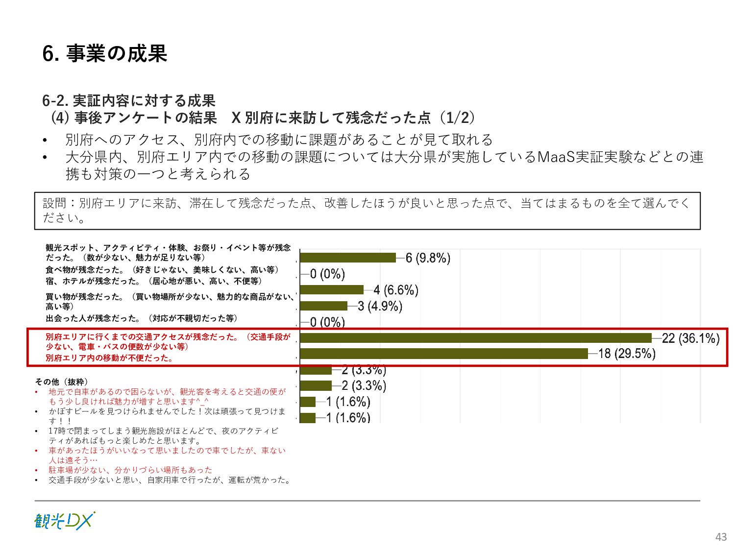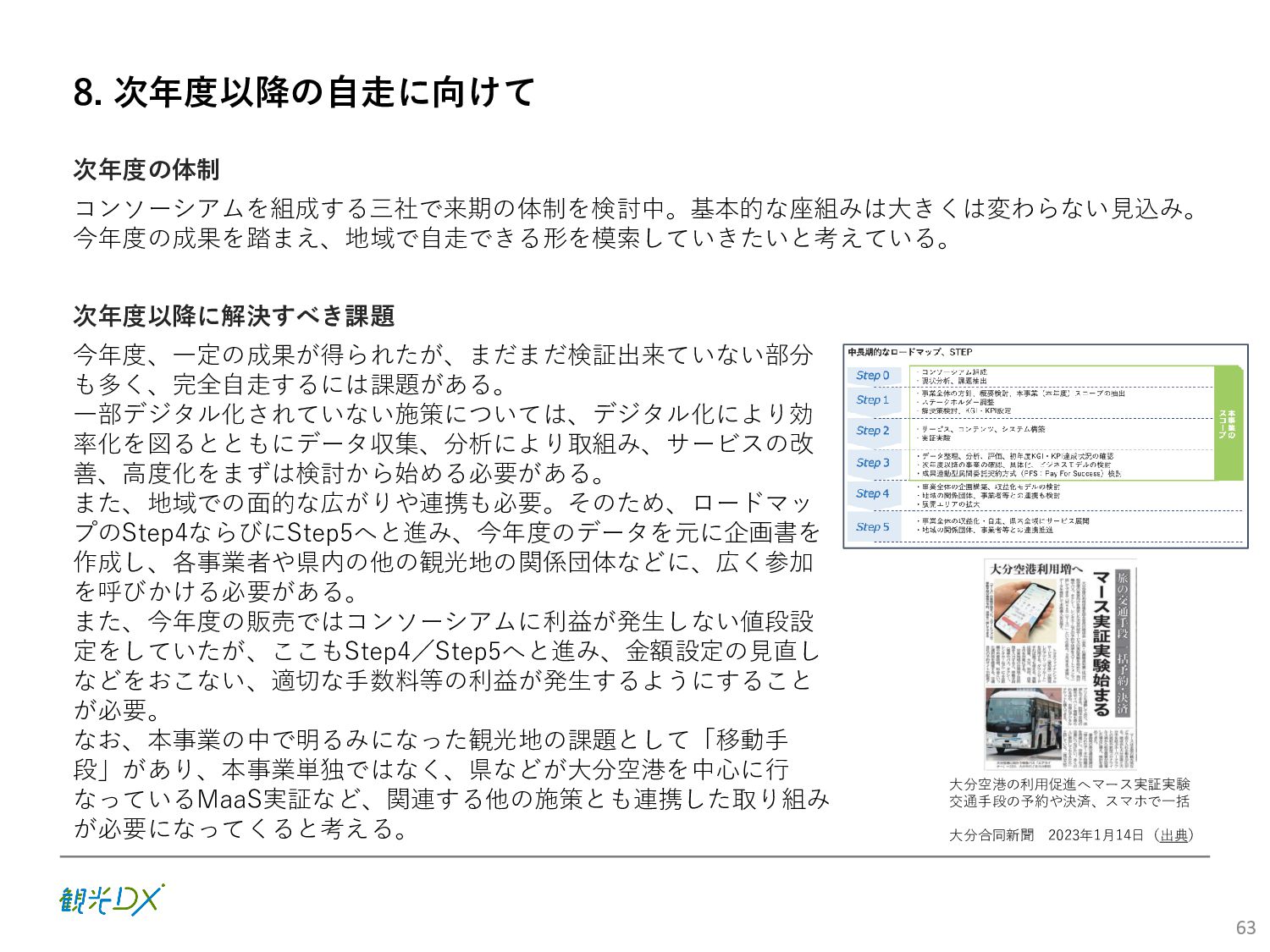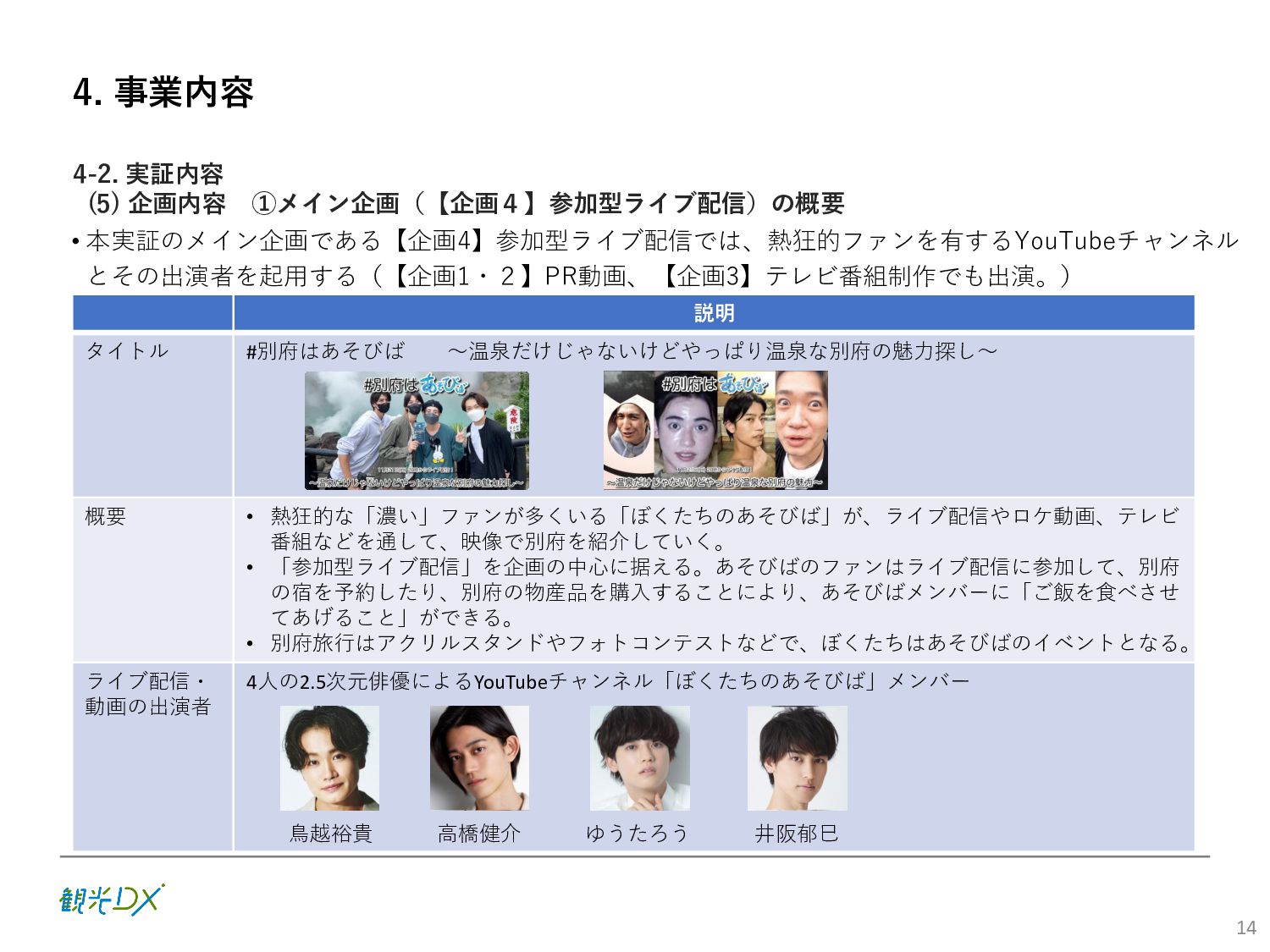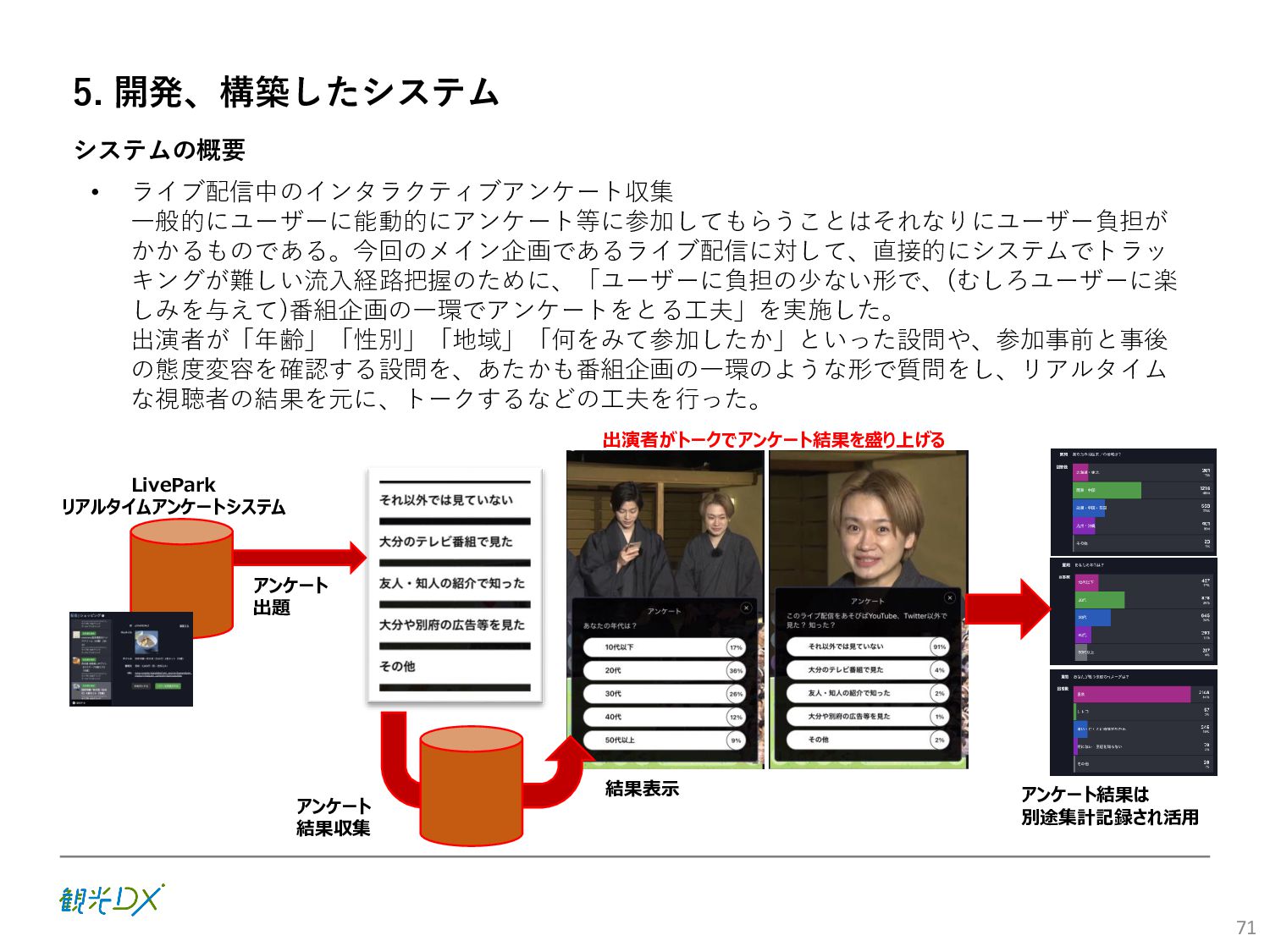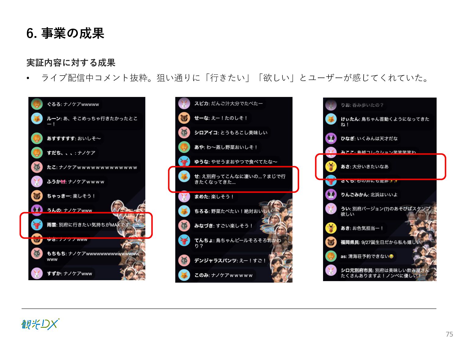 (5)聖地巡礼におけるSNS投稿数:100投稿 10月 11月 12月 1月 合計 目標数値 (累計) 購入件数 達成数値(件) (売上個数+宿泊人数) 0 424 (物342、宿82) 54 (物38、宿16) 29 (物4、宿25) 507 (物384、宿123) 500件 参考:購入人数 (物品購入者数+宿泊人数) 0 285 (物203、宿82) 30 (物14、宿16) 26 (物1、宿25) 341 (物218、宿123) 進捗率(%) 0 85% 96% 101% 101% 100% 平均購入⾦額 達成数値(円) (売上額/購入人数) 0 9,214 14,539 21,373 10,609 5,000円 進捗率(%) 0 184% 291% 427% 212% 100% 売上 達成数値(円) 0 2,625,967 (物1,167,692、宿 1,458,275) 436,157 (物113,757、 宿322,400) 555,704 (物9,404、宿 546,300) 3,617,828 (物1,290,853、宿 2,326,975) 2,500,000円 進捗率(%) 0 105% 122% 145% 145% 100% 11月 12月 1月 合計 目標数値(累計) 達成数値(投稿) 3,972 335 432 4,739 100投稿 進捗率(%) 3,972% 4,307% 4,739% 4,739% 100% 23