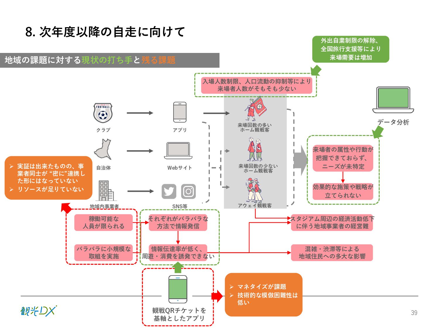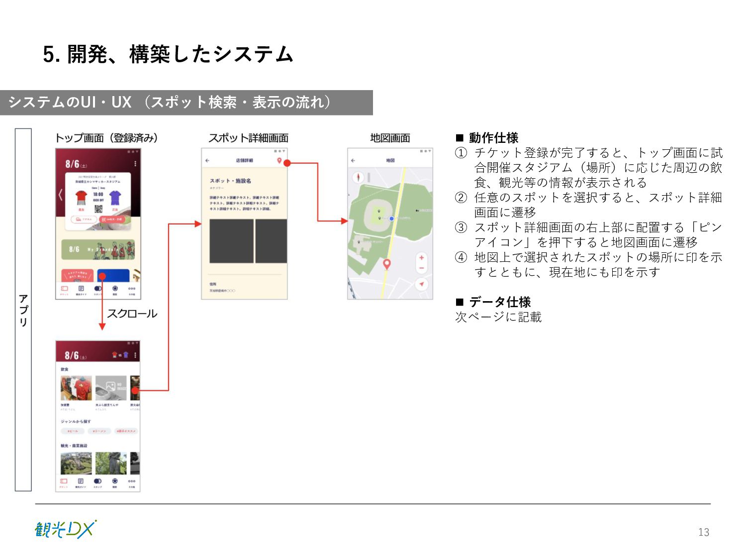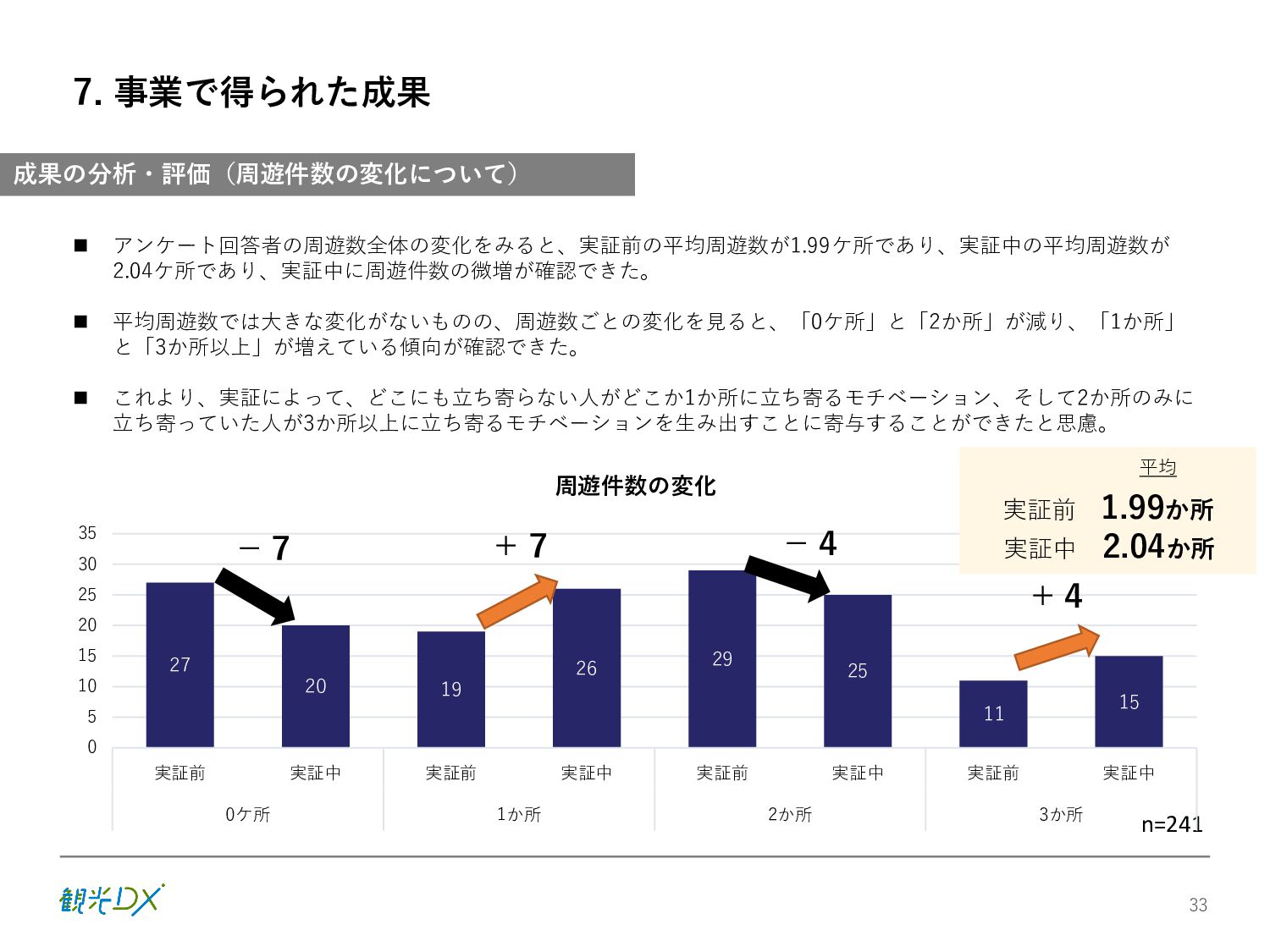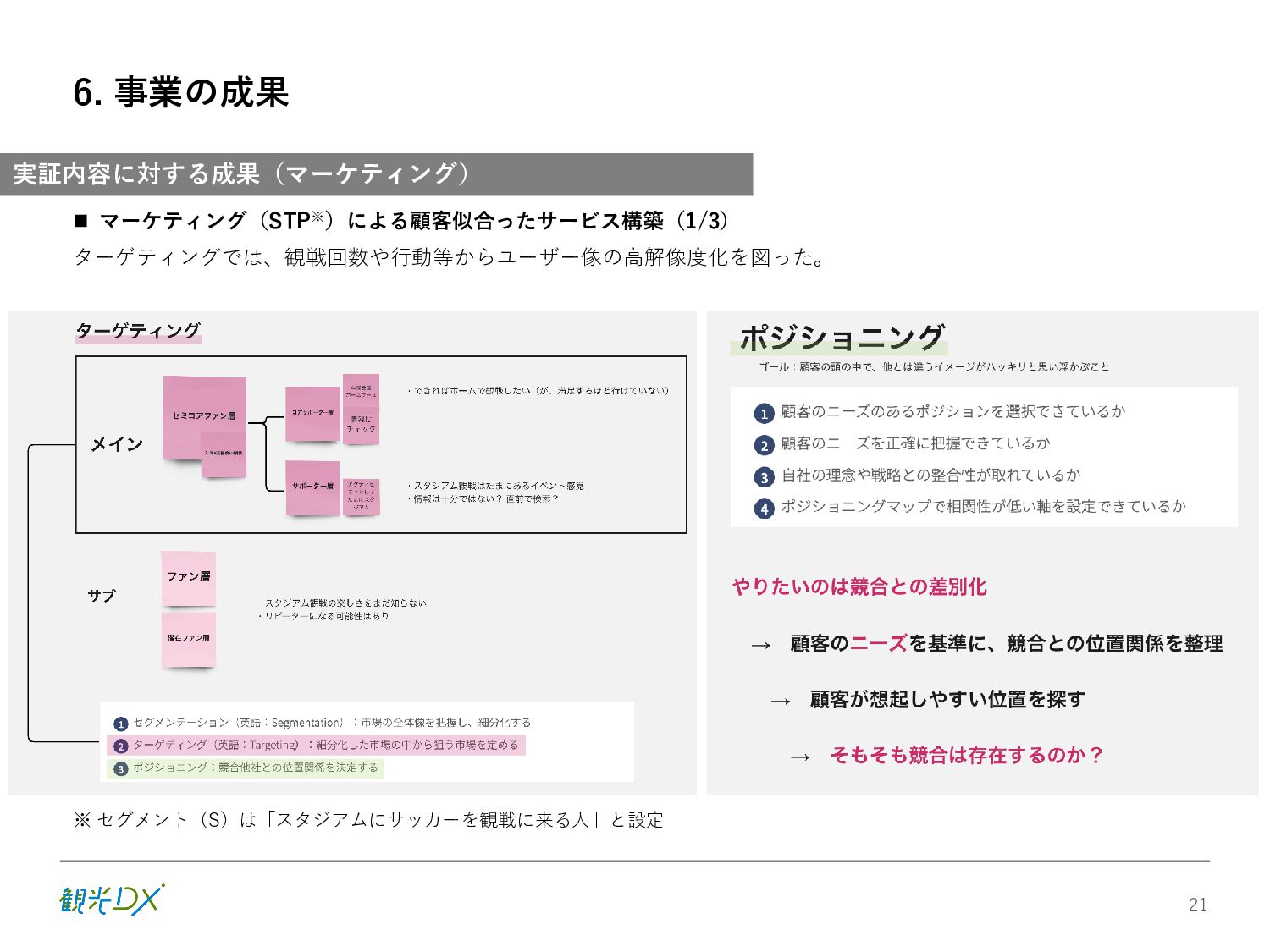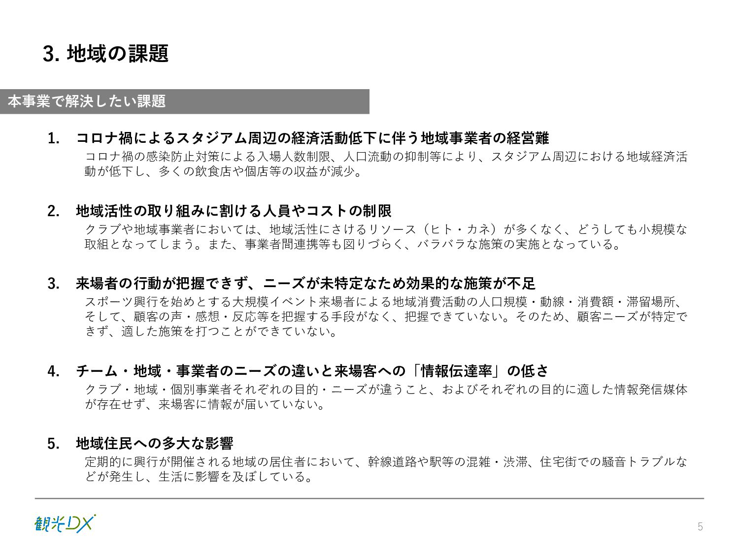142 81 22% 117,410 827 1,450 茨城県 124 74 20% 110,982 895 1,500 千葉県 70 39 10% 53,469 764 1,371 神奈川県 42 25 7% 28,318 674 1,133 埼玉県 40 21 6% 32,861 822 1,565 その他 49 27 7% 41,574 848 1,540 不明 143 108 29% 107,236 750 993 合計 610 375 100% 491,850 806 1,312 2022年11月5日 東京都 296 180 26% 284,525 961 1,581 茨城県 218 123 18% 199,126 913 1,619 千葉県 130 72 11% 121,880 938 1,693 神奈川県 107 61 9% 96,829 905 1,587 埼玉県 41 26 4% 29,224 713 1,124 その他 85 57 8% 71,663 843 1,257 不明 241 165 24% 219,739 912 1,332 合計 1,118 684 100% 1,022,986 915 1,496 順位変動なし 増加傾向 大きな変化なし 実 施 前 実 施 後 ※ IDi数とは、Suica利用者数を意味する • 観戦者の居住地(都道府県)別で決済回数・IDi数※を集計すると、東京都、茨城県、千葉県、神奈川県、埼玉県が上 位5都県となっており、本取組実施前後で順位変動はなし。 • 各都県別での決済回数・IDi数・決済金額はそれぞれ増加傾向だが、決済金額(回数平均)・決済金額(IDi数平均)は本取 組前後で大きな変化なし。 アプリ内の情報配信等によって、特にこれまで地域内で購買を行っていなかった観戦者(潜在顧客)に対して、購 買促進効果があったと推測される。 ➢ 茨城県内での電子マネー決済状況(都道府県別) 鹿嶋エリアにおける電子マネー決済分析(2/3) 観光庁様・事務局様 本分析は、本コンソーシアム・再委託企 業が有する知的財産等を用いて行なった ものとなるため、外部に公表する際は、 事前に連絡・協議をお願いいたします。