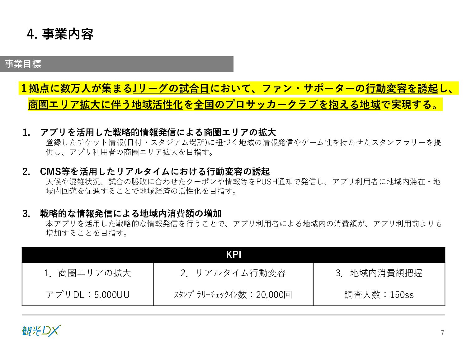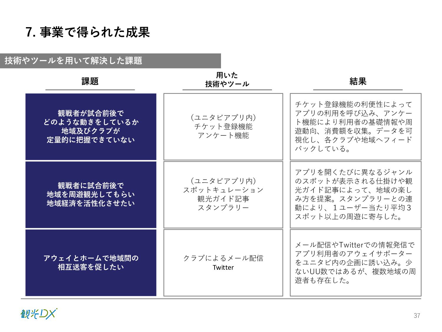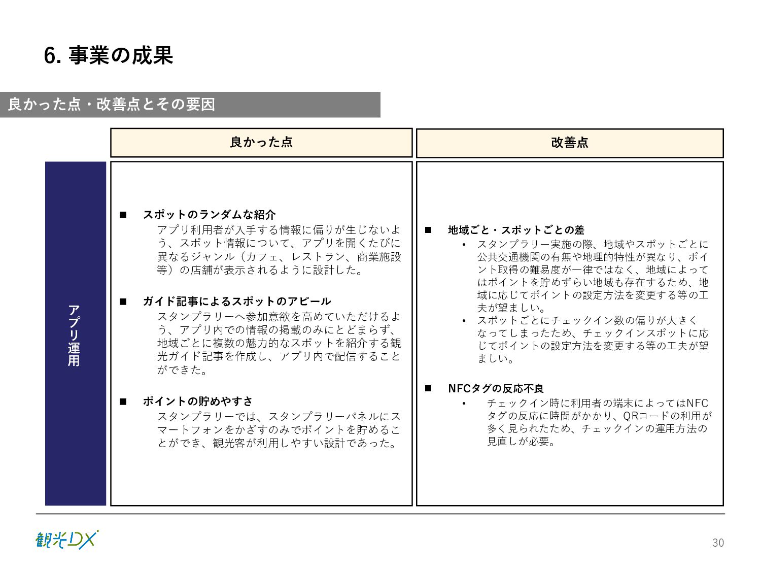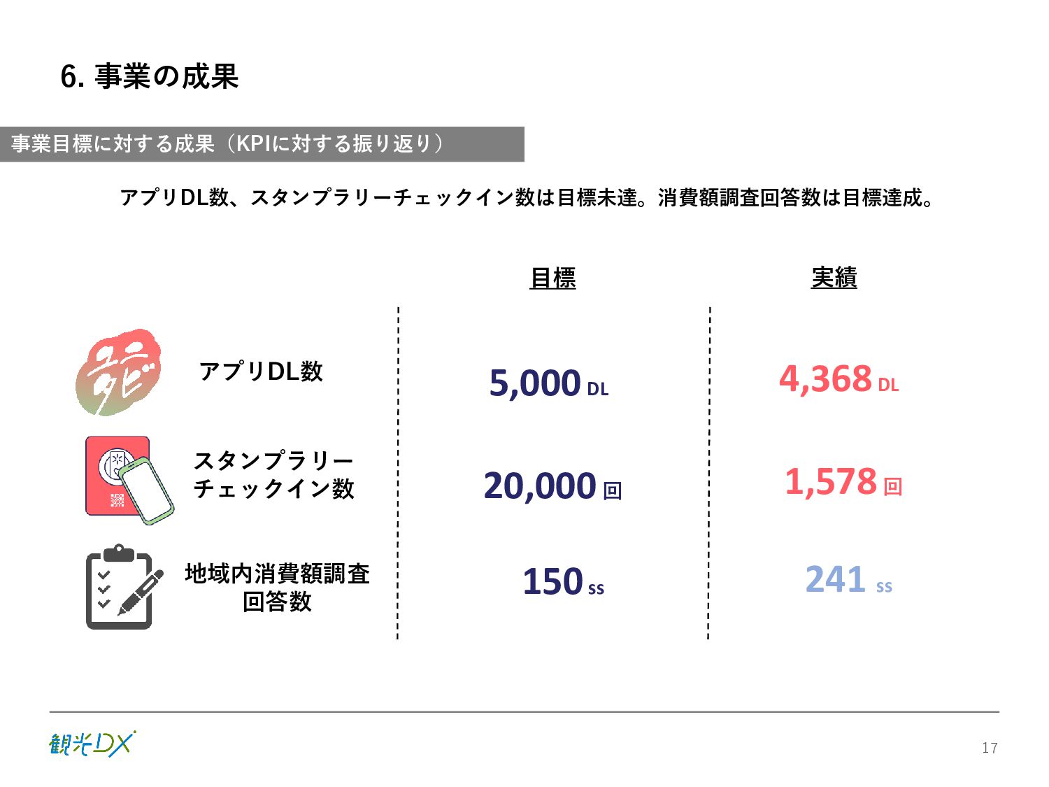 142 81 22% 117,410 827 1,450 茨城県 124 74 20% 110,982 895 1,500 千葉県 70 39 10% 53,469 764 1,371 神奈川県 42 25 7% 28,318 674 1,133 埼玉県 40 21 6% 32,861 822 1,565 その他 49 27 7% 41,574 848 1,540 不明 143 108 29% 107,236 750 993 合計 610 375 100% 491,850 806 1,312 2022年11月5日 東京都 296 180 26% 284,525 961 1,581 茨城県 218 123 18% 199,126 913 1,619 千葉県 130 72 11% 121,880 938 1,693 神奈川県 107 61 9% 96,829 905 1,587 埼玉県 41 26 4% 29,224 713 1,124 その他 85 57 8% 71,663 843 1,257 不明 241 165 24% 219,739 912 1,332 合計 1,118 684 100% 1,022,986 915 1,496 順位変動なし 増加傾向 大きな変化なし 実 施 前 実 施 後 ※ IDi数とは、Suica利用者数を意味する • 観戦者の居住地(都道府県)別で決済回数・IDi数※を集計すると、東京都、茨城県、千葉県、神奈川県、埼玉県が上 位5都県となっており、本取組実施前後で順位変動はなし。 • 各都県別での決済回数・IDi数・決済金額はそれぞれ増加傾向だが、決済金額(回数平均)・決済金額(IDi数平均)は本取 組前後で大きな変化なし。 アプリ内の情報配信等によって、特にこれまで地域内で購買を行っていなかった観戦者(潜在顧客)に対して、購 買促進効果があったと推測される。 ➢ 茨城県内での電子マネー決済状況(都道府県別) 鹿嶋エリアにおける電子マネー決済分析(2/3) 観光庁様・事務局様 本分析は、本コンソーシアム・再委託企 業が有する知的財産等を用いて行なった ものとなるため、外部に公表する際は、 事前に連絡・協議をお願いいたします。