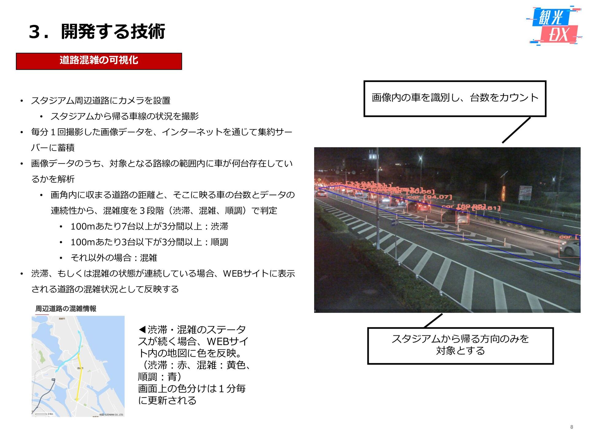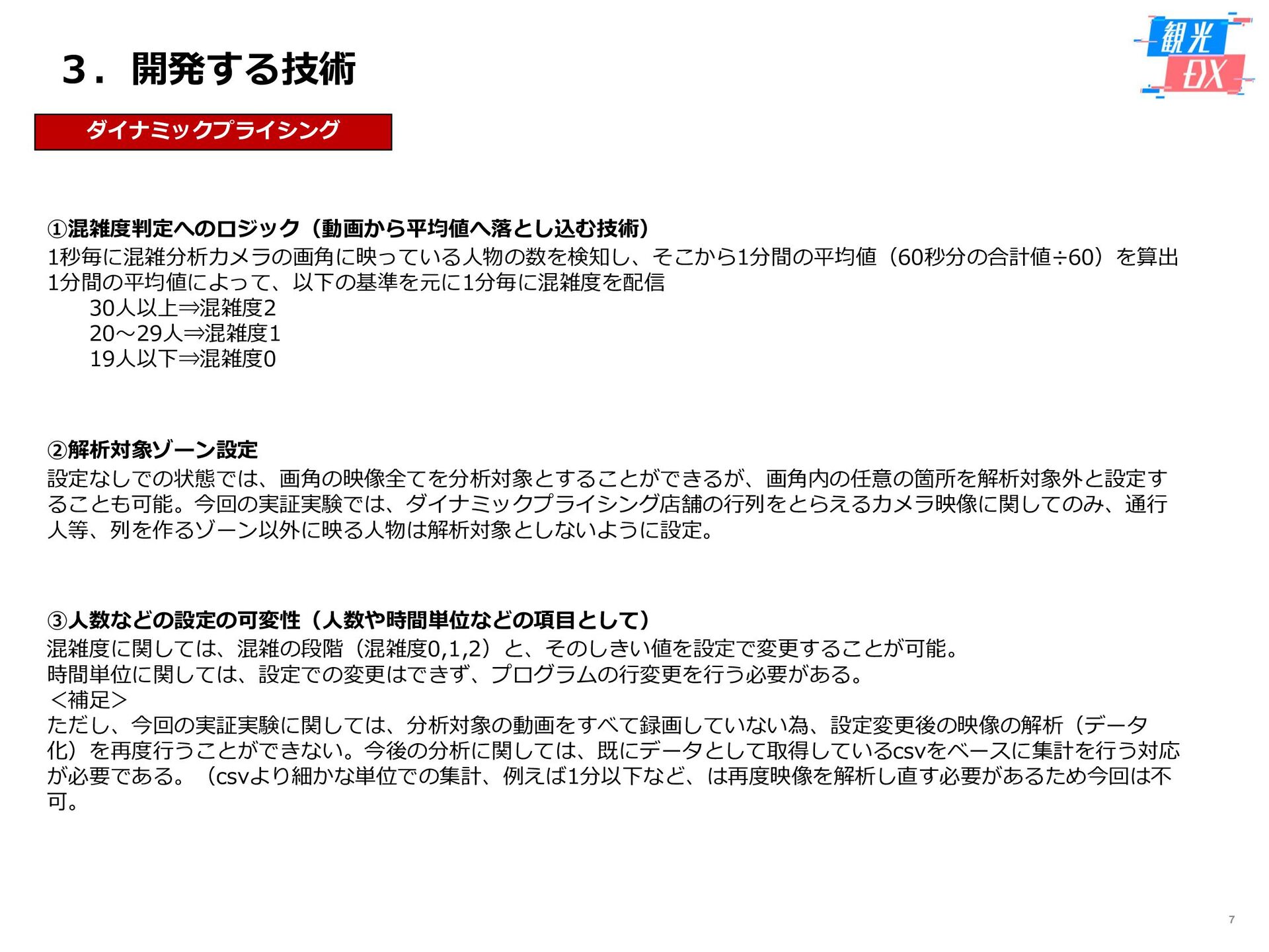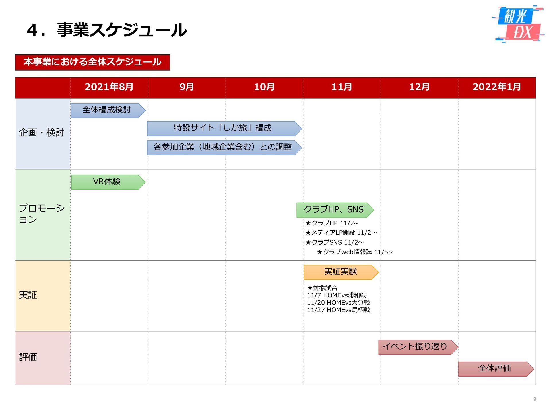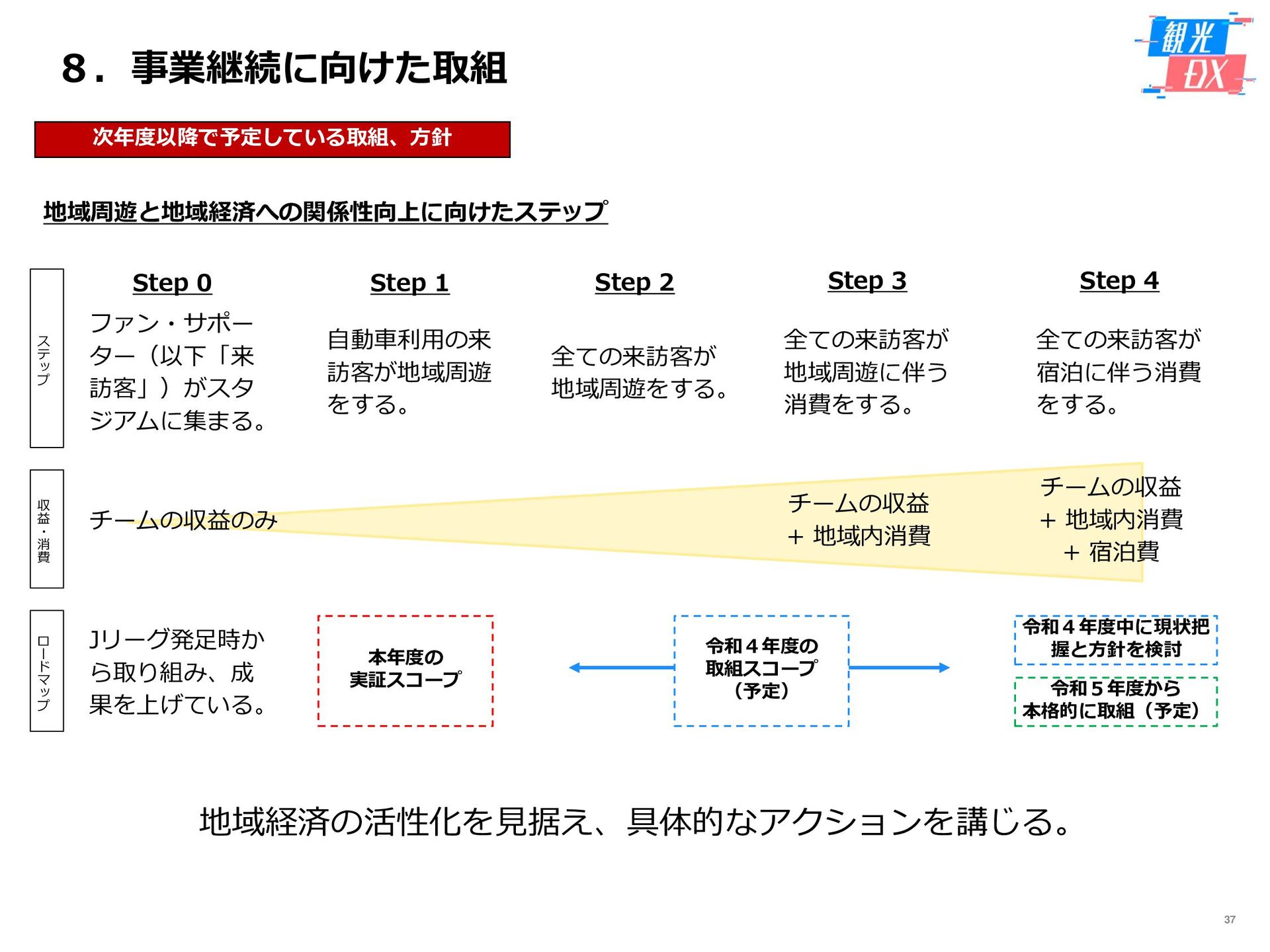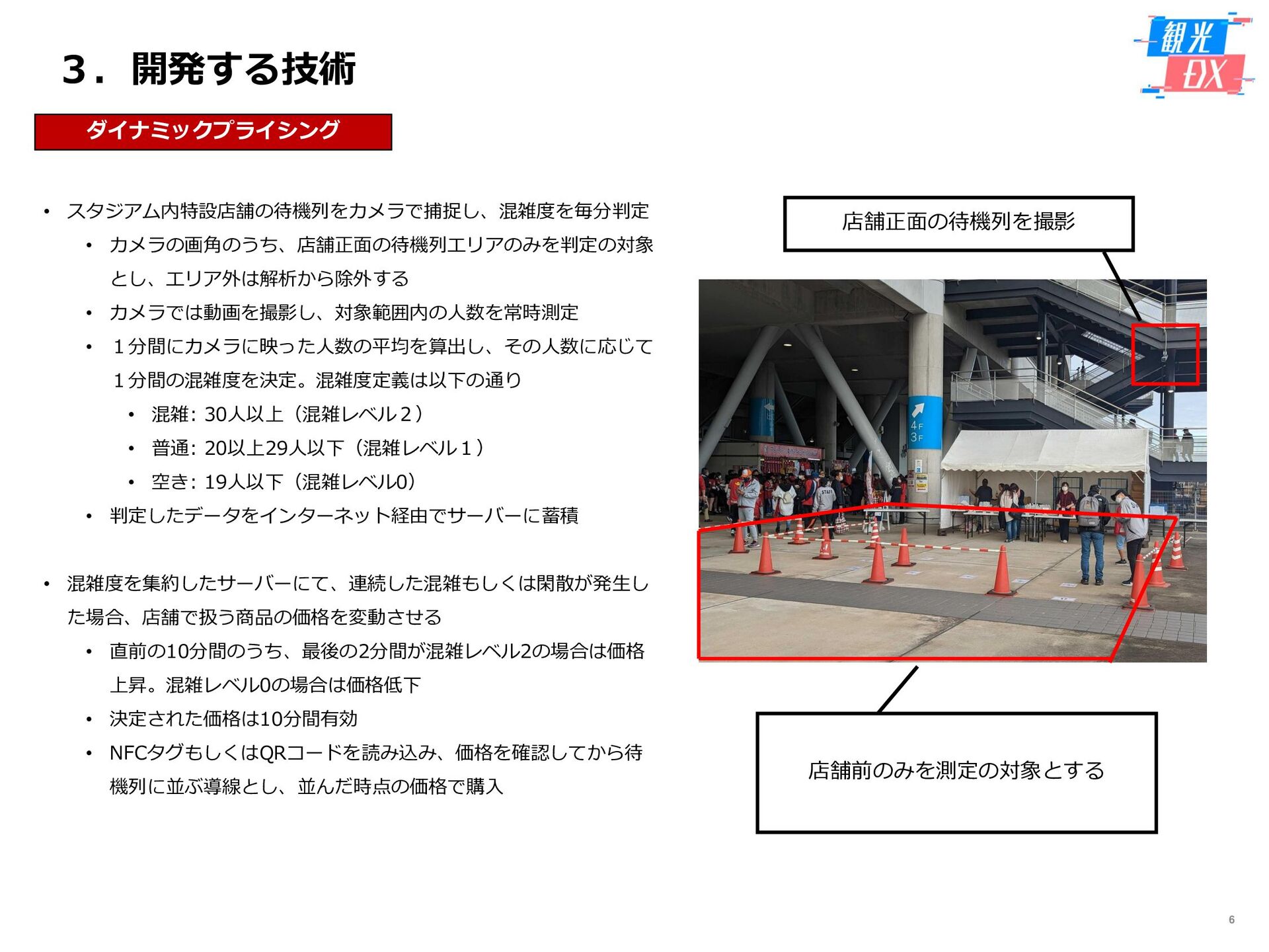 • 「しか旅」サイト閲覧UUから算出。同一ユーザーの日別重複を除い た実績値は6,294UU(参考:PV値41,354) • KPIを大きく達成し、ファン・サポーターにおける地域周遊の潜在 ニーズの高さを把握。 • なお、重要なポイントは、単なる地域の情報発信ではなく、アント ラーズのストーリーに乗った情報発信だったことが顧客ニーズに刺 さったのではないかと予想。 地域周遊コンテンツにお ける地域資源との接触回 数:2,000回 2,319回 • 飲食店・観光施設(計43店舗)に設置したNFCタグへのタッチ数 で算出。タッチ数に応じてポイントを付与し、鹿島アントラーズオ リジナルグッズとの交換を可能とした。実績値はKPIを大幅に上回 る2,319回となった。 • グッズ交換回数は212回、期間中(11/7~11/28)に100回以上の周 遊を行ったヘビーユーザーも数名いた。 • また、5施設以上でNFCタグにタッチしたファン・サポーターは、 約100名(全体の約45%)と周遊率の高さも明らかとなった。 高付加価値コンテンツ利 用者:200名 234名 ※VR体験:94名 ※芝生体験:140名 • VR体験者数、芝生体験者数にて算出。参加人数が限られた高付加価 値コンテンツである為、上記に比べ参加人数のKPIは低い設定とな るが、KPIを超える合計234名に参加いただいた。
