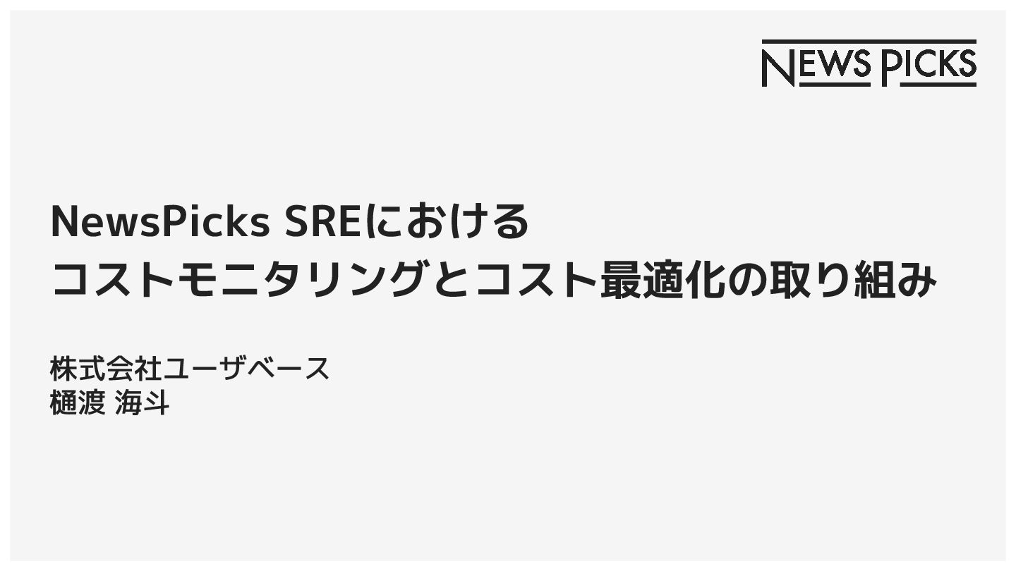 NewsPicks SREにおける コストモニタリングとコスト最適化の取り組み 株式会社ユーザベース 樋渡 海斗