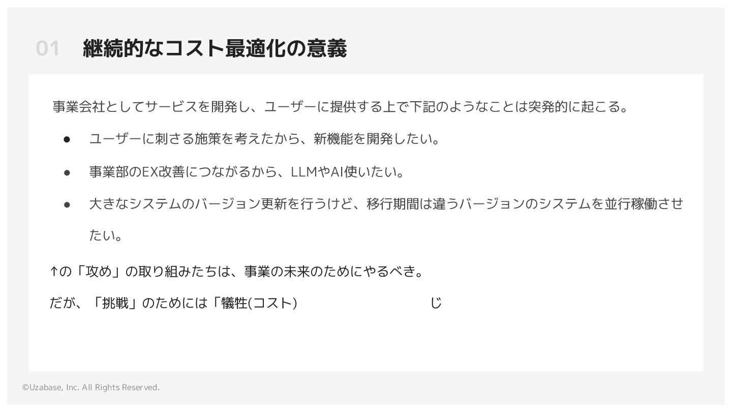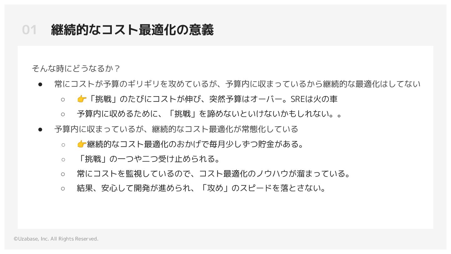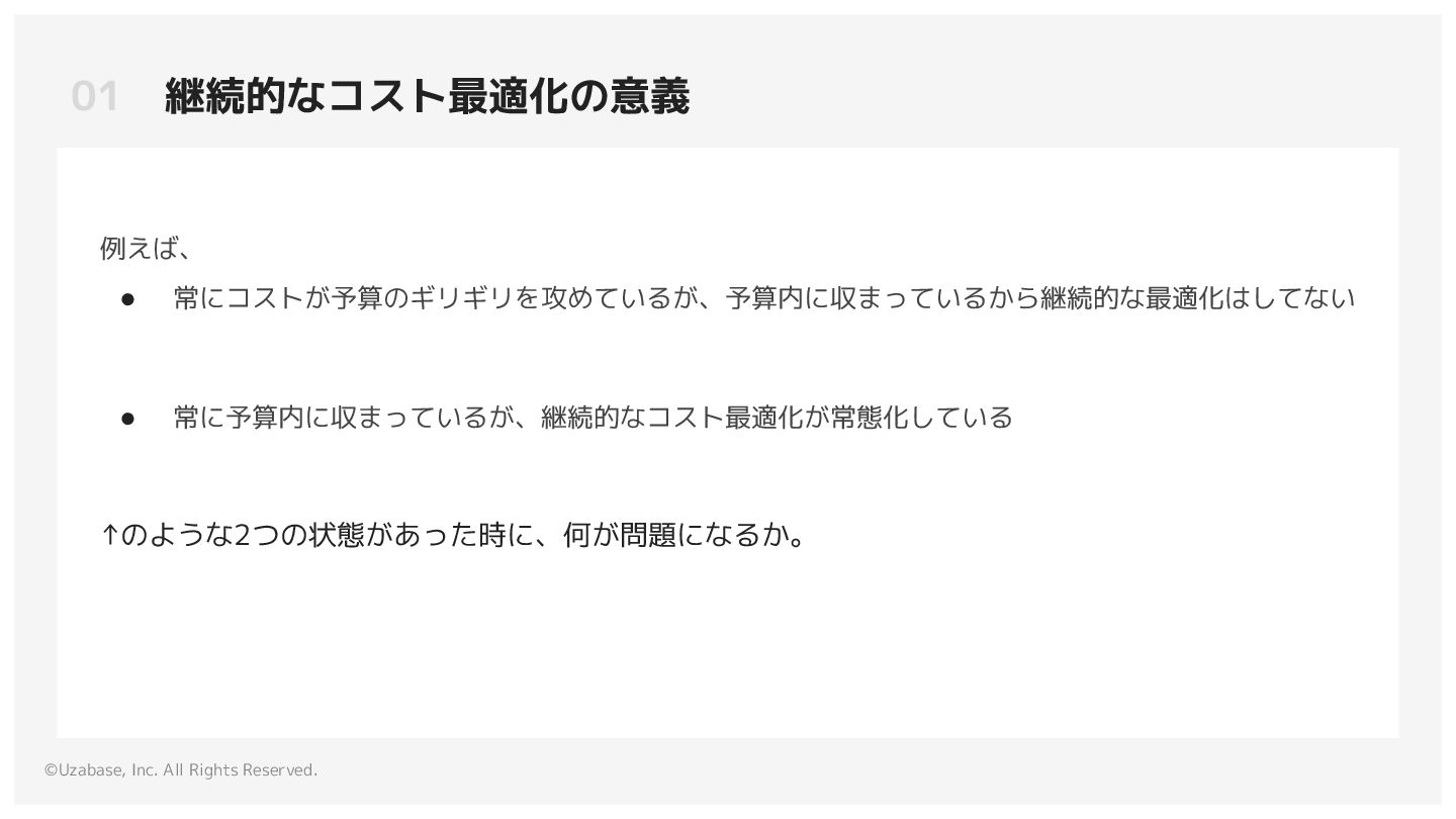 ©Uzabase, Inc. All Rights Reserved. 01 継続的なコスト最適化の意義