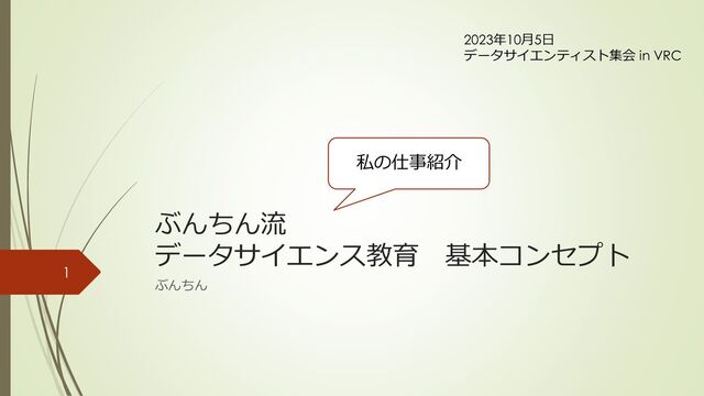 ぶんちん流 データサイエンス教育 基本コンセプト ぶんちん 2023年10月5日 データサイエンティスト集会 in VRC 1 私の仕事紹介