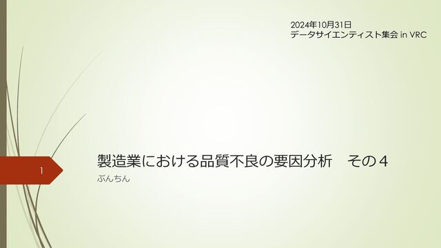製造業における品質不良の要因分析 その4 ぶんちん 2024年10月31日 データサイエンティスト集会 in VRC 1