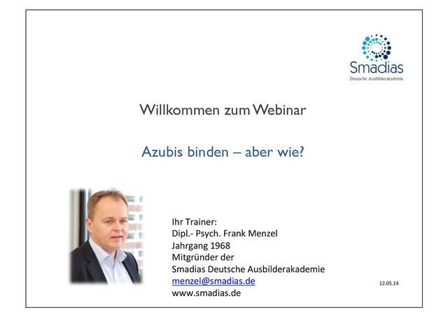 In den letzten Monaten haben wir uns von Smadias intensiv mit dem Thema “Auszubildende binden” beschäftigt und mit einigen Unternehmen aus Industrie und Handwerk sehr gute Workshops durchgeführt und Werkzeuge entwickelt. Eine gute Zusammenfassung bieten die Folien aus unserem Webinar. Weitere Informationen unter http://www.smadias.de