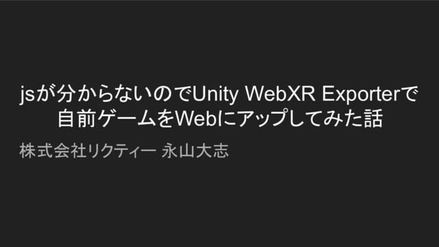jsが分からないのでUnity WebXR Exporterで 自前ゲームをWebにアップしてみた話 株式会社リクティー 永山大志