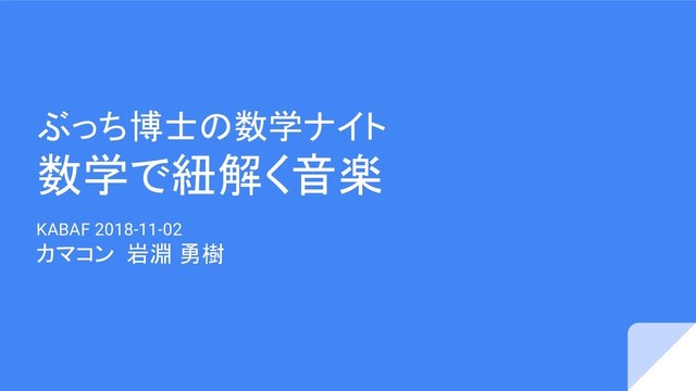 今回は、面白法人カヤック社員で、 情報システム工学を専攻しながら音楽の研究で博士号を取得した岩淵博士(ぶっち)が、音楽に潜む数学的な原理について講義します。