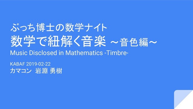 KABAF Butchi's Math Night - Music Disclosed in Mathematics - timbre -