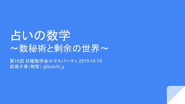 第16回 日曜数学会「占いの数学~数秘術と剰余の世界~」