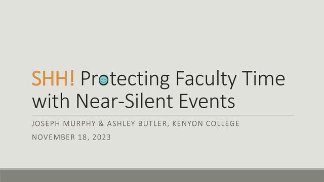 ◦ 12 participants total ◦ Two sessions (4 weeks each) ◦ People from session 1 asked to be a part of session 2 so they could finish their books ◦ People from session 2 asked if we could sponsor more dates Fall 2023 ◦ 7 participants ◦ One session (8 weeks) ◦ Still ended up adding 3 sessions Future ◦ Model after writing groups (semester-long)? ◦ Continue offering lunch for every session? Humanities, 5 Natural Sciences, 9 Social Sciences, 3 Fine Arts, 1 Staff, 1 Disciplinary Distribution of Silent Reading Group Participants Over Time