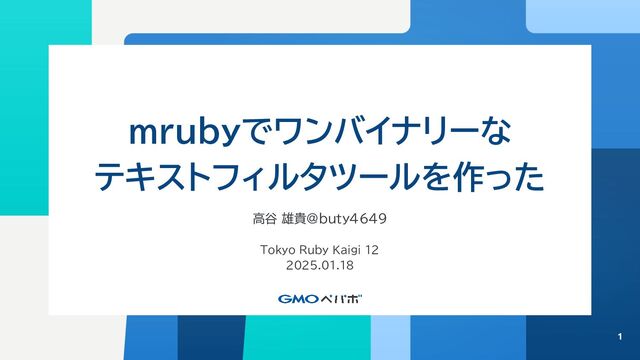 東京Ruby会議12で発表した資料です。 https://regional.rubykaigi.org/tokyo12/ 私の作っているrfコマンドの紹介、mrubyの基本的な情報、使い方、開発するときのTipsを紹介しています。