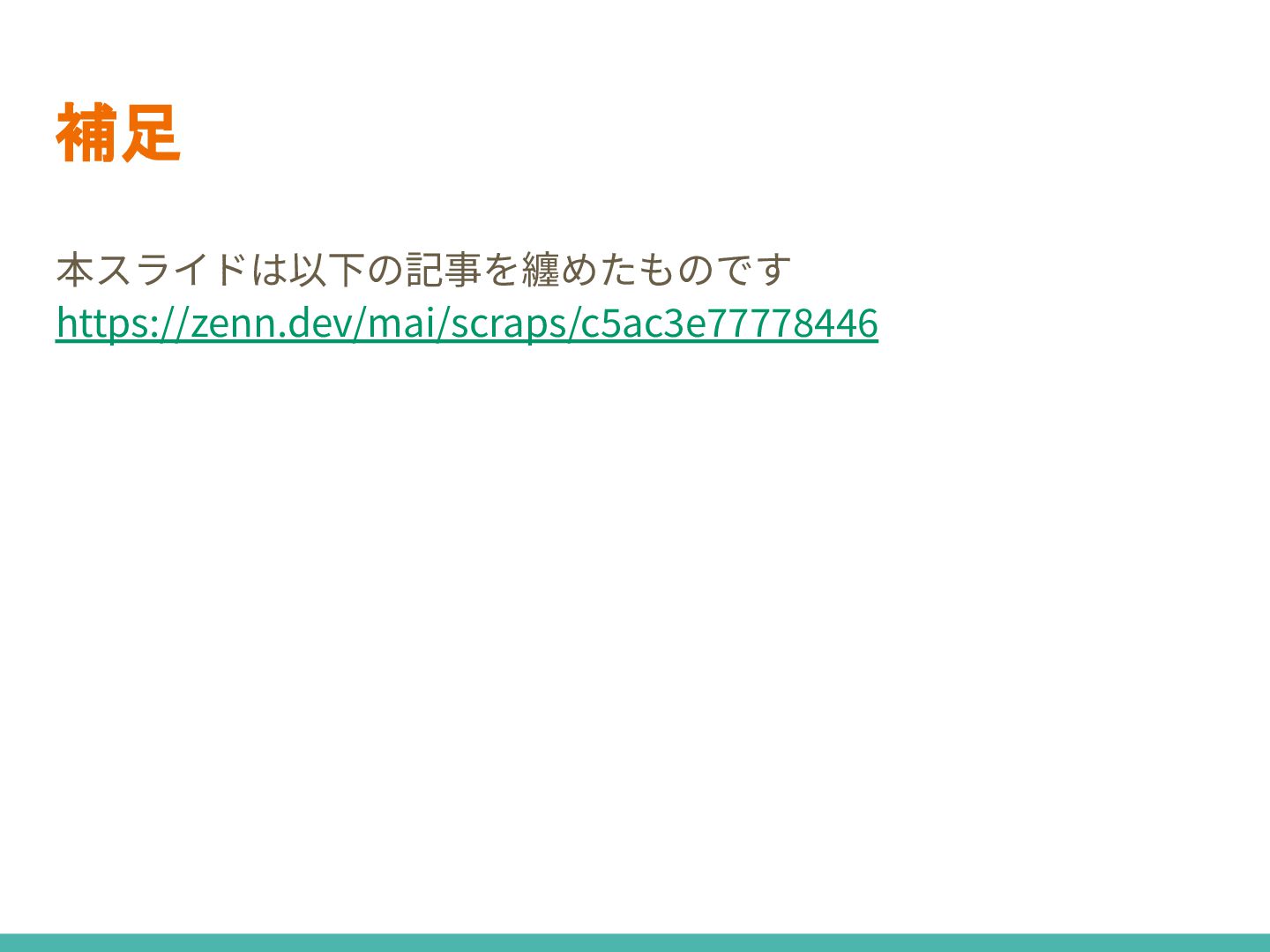 補足 本スライドは以下の記事を纏めたものです https://zenn.dev/mai/scraps/c5ac3e77778446