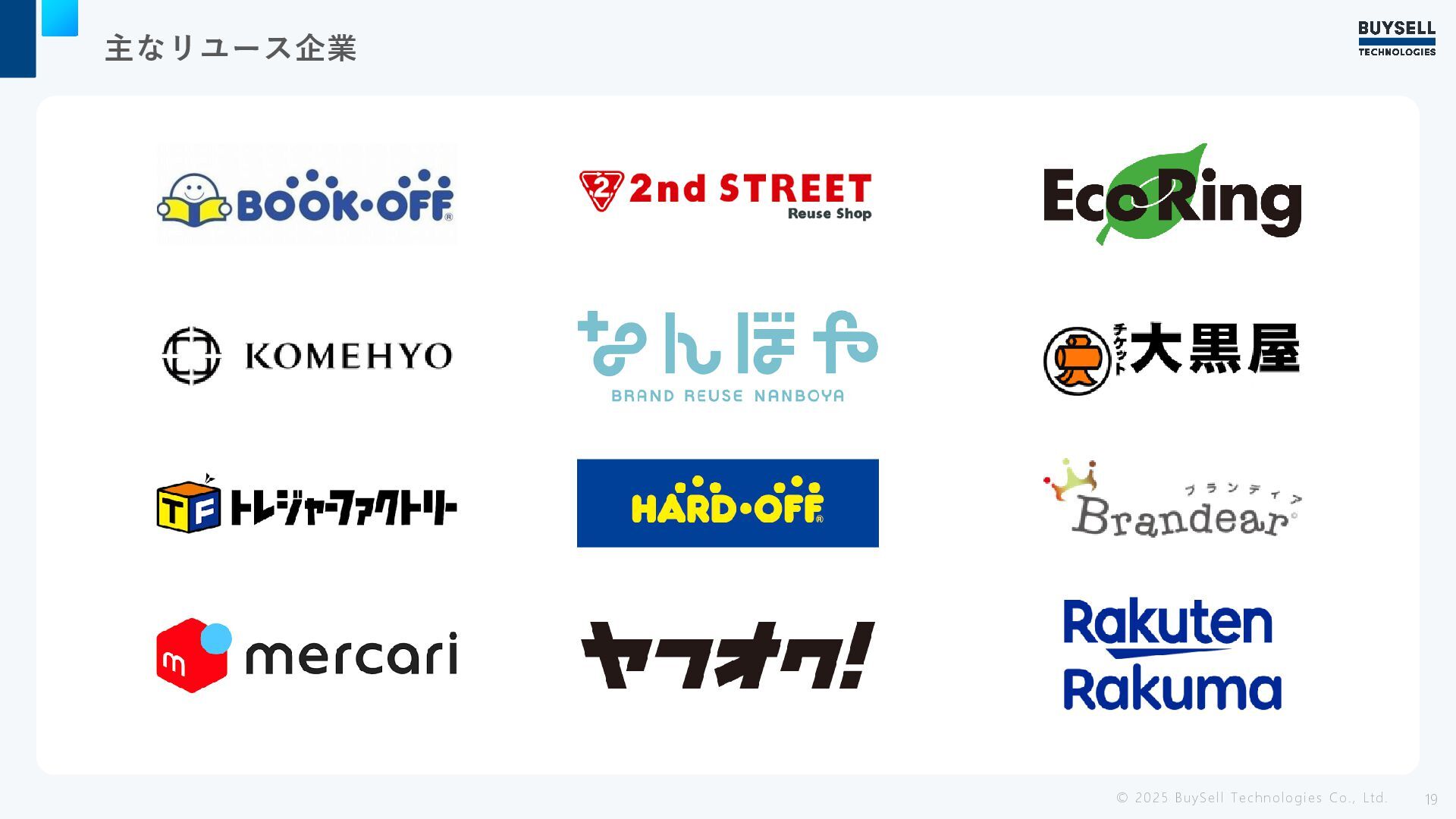 主なリユース企業 © 2025 BuySell Technologies Co., Ltd. 19