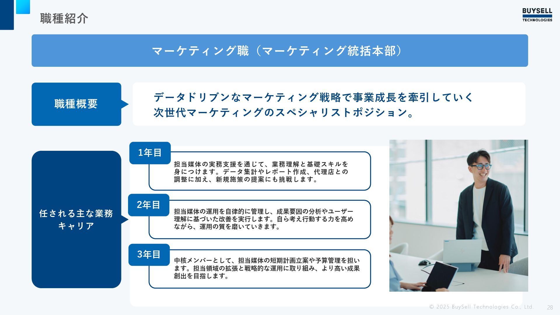 担当領域を自分の裁量で運営し、分析洞察から生まれるアイデアを実際のビジネ ス成果に変える仕事 職種紹介 © 2025 BuySell Technologies Co., Ltd. 28