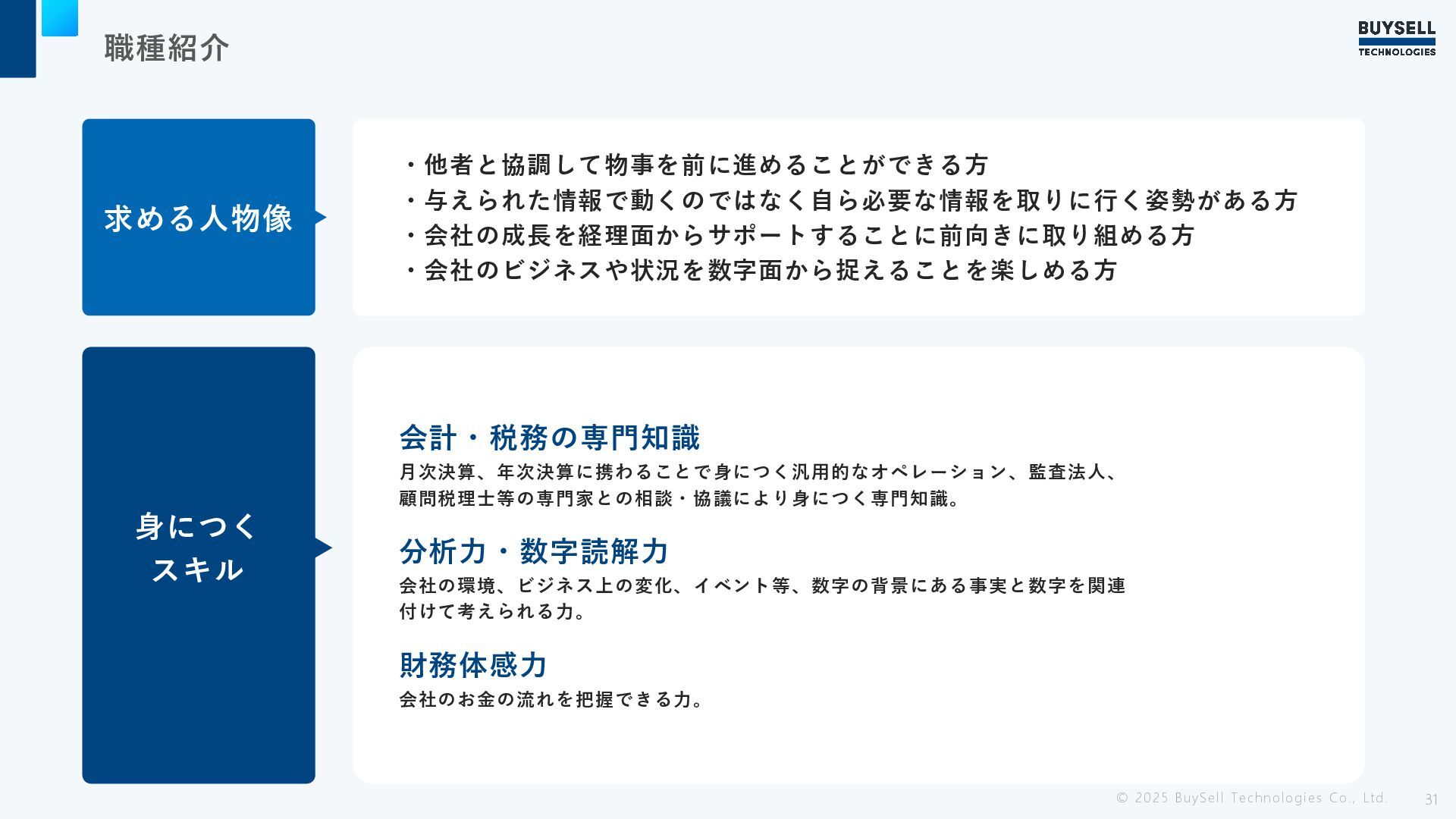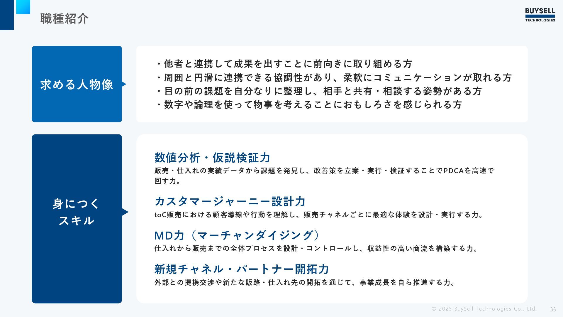 職種紹介 © 2025 BuySell Technologies Co., Ltd. 31 求める人物像 ・他者と協調して物事を前に進めることができる方