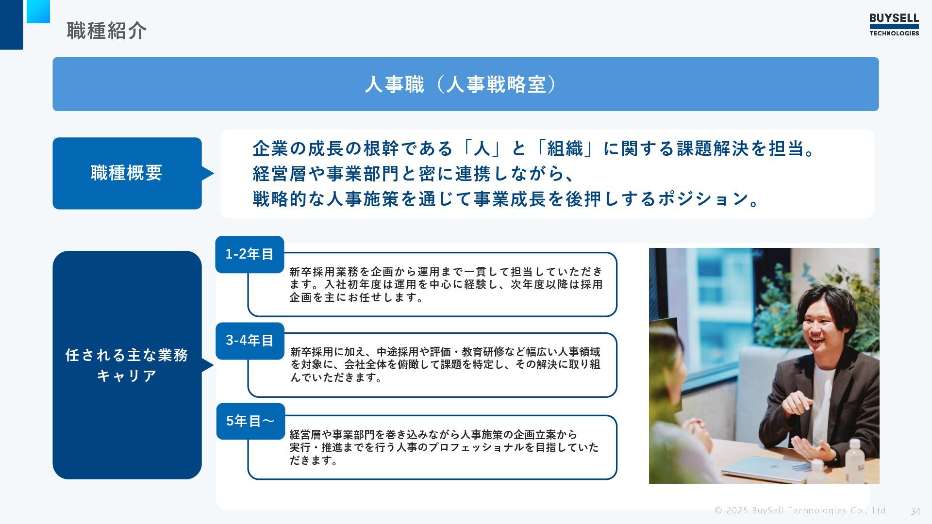職種紹介 © 2025 BuySell Technologies Co., Ltd. 33 求める人物像 ・他者と連携して成果を出すことに前向きに取り組める方