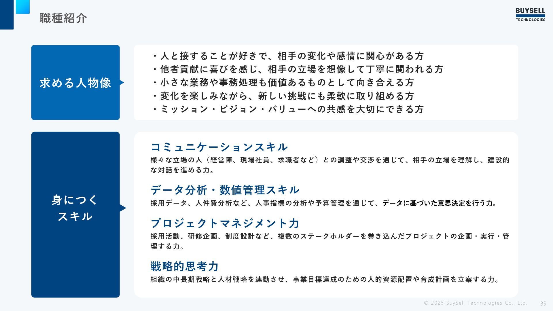 職種紹介 © 2025 BuySell Technologies Co., Ltd. 35 求める人物像 ・人と接することが好きで、相手の変化や感情に関心がある方