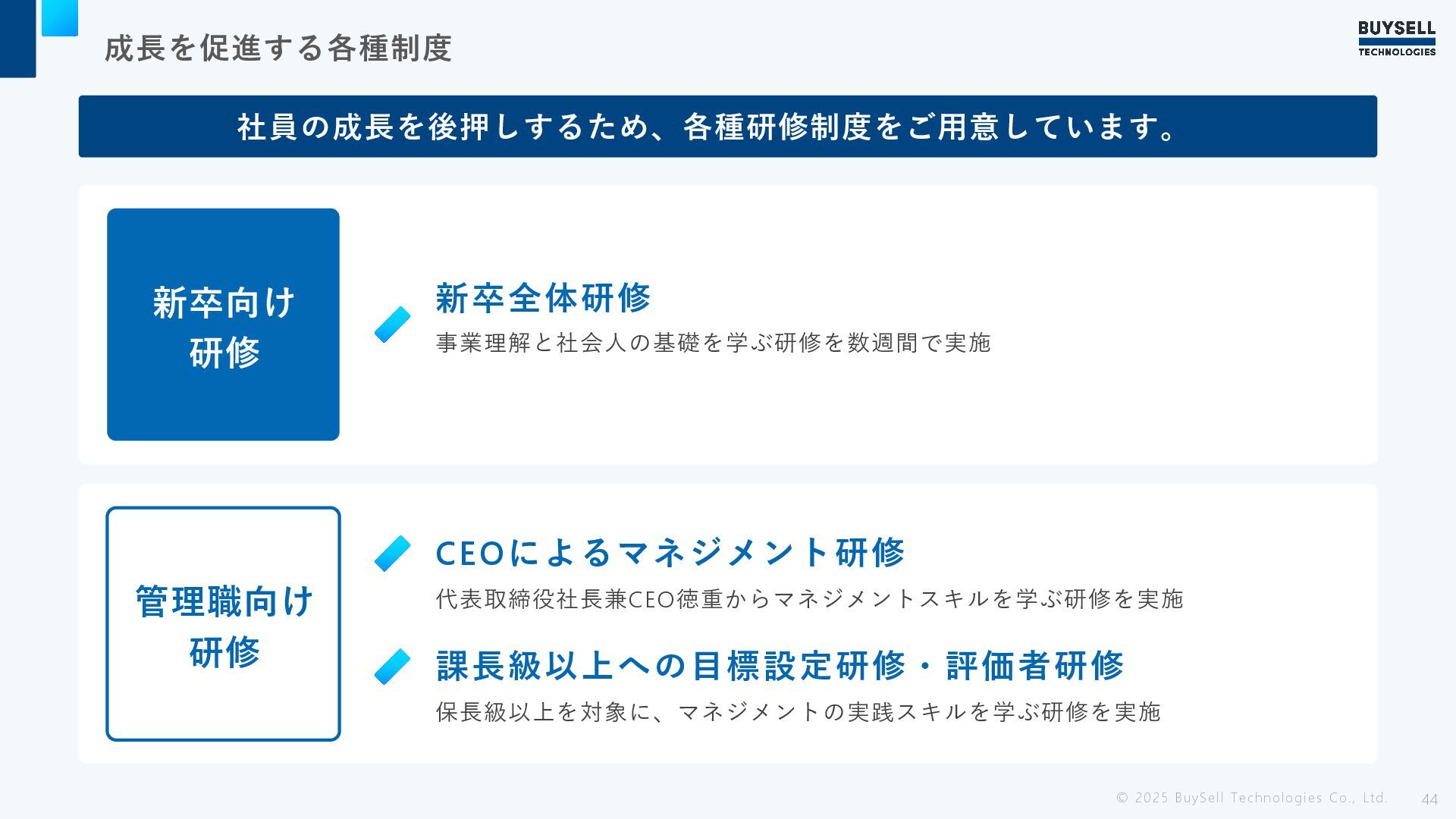 42 © 2025 BuySell Technologies Co., Ltd. 研修・育成制度 07