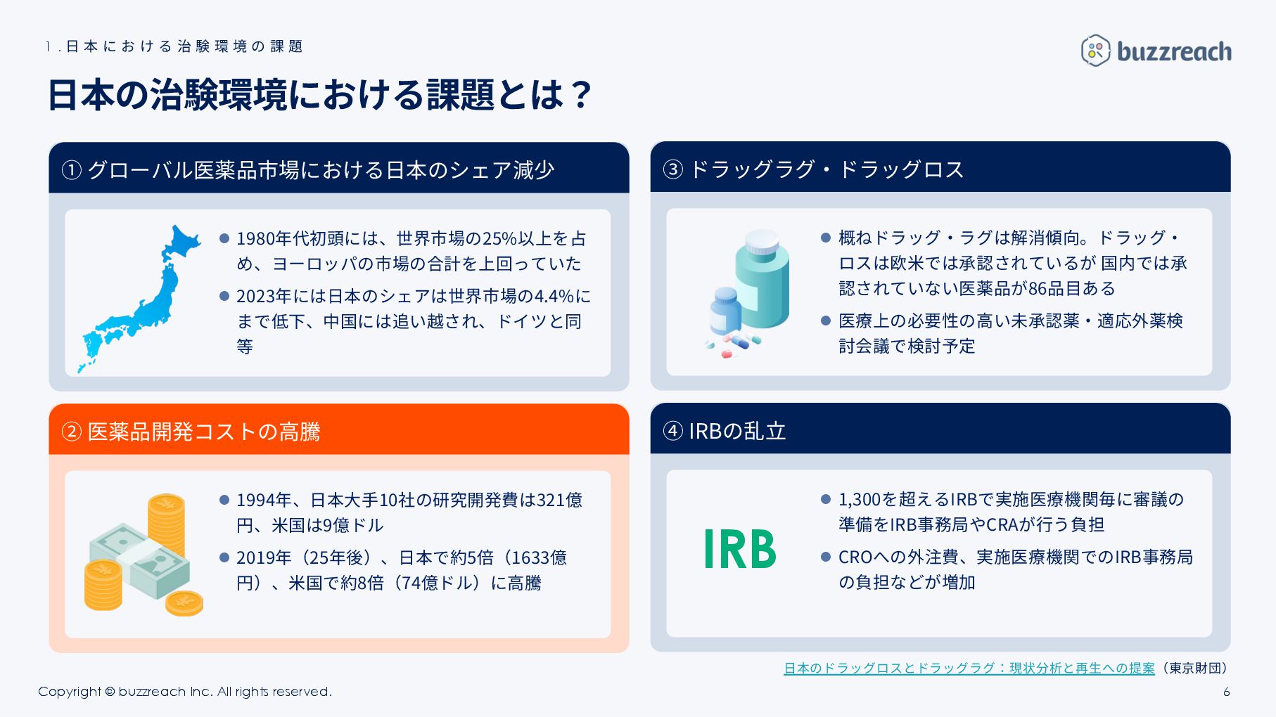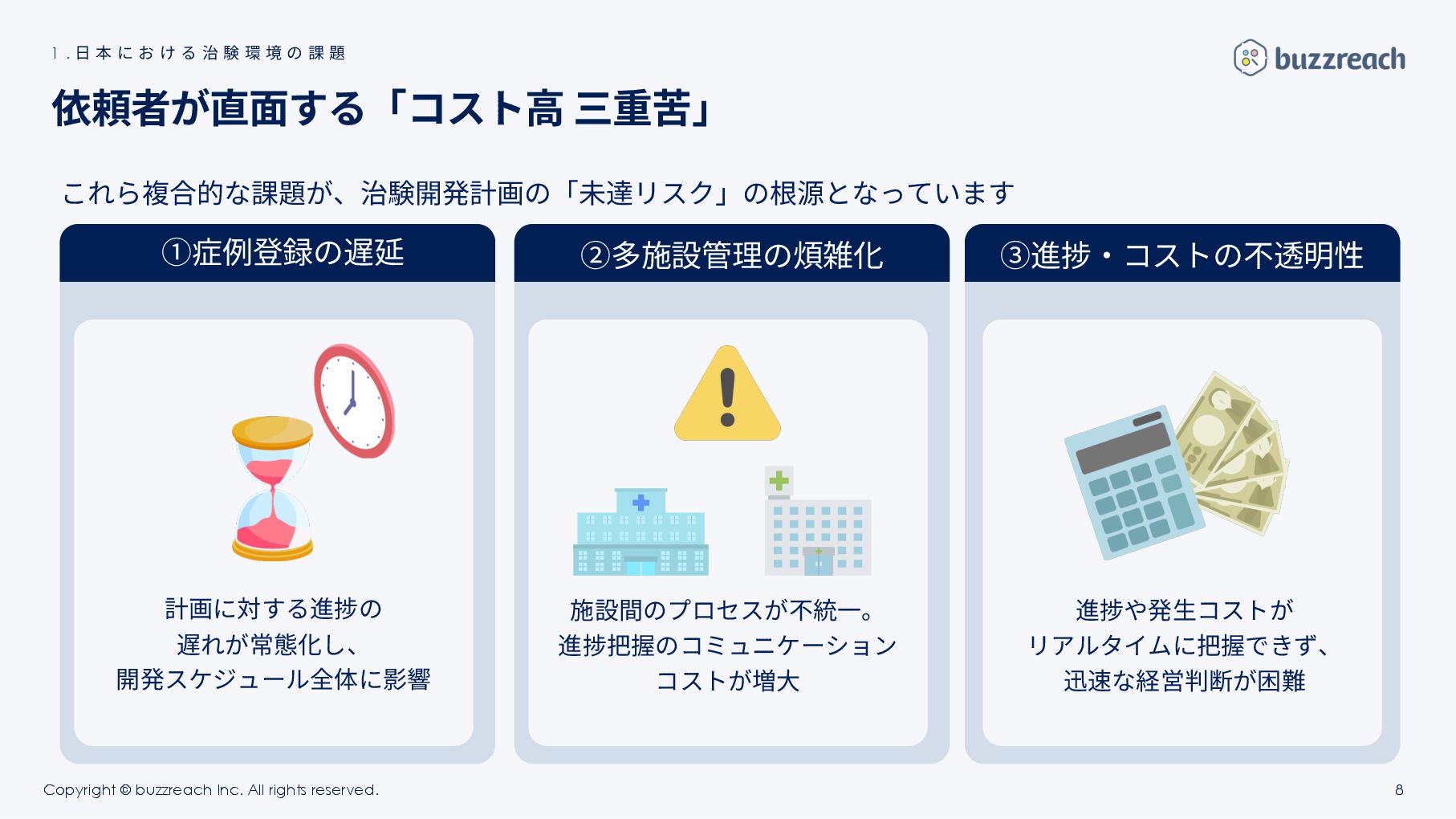 日本の新薬開発を巡る環境は、国際競争の激化、治験コストの高騰、そしてなによりも症例登録の遅延という未達リスクに常に晒されています。優れた治療法を待ち望む患者がいるにもかかわらず、治験アクセスが限られ、医療機関側の負担が増大することで、治験全体の非効率性が深刻な課題となっています。