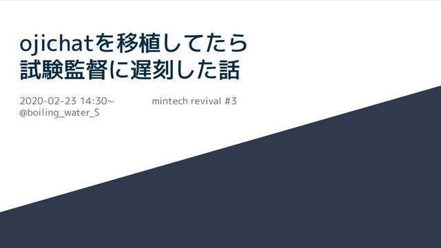 ojichatを移植してたら 試験監督に遅刻した話 2020-02-23 14:30~ mintech revival #3 @boiling_water_S