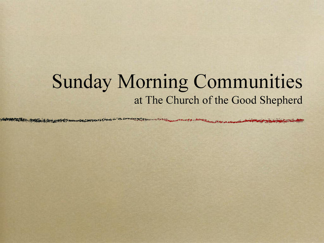Marks of these 3 ongoing Sunday Morning Communities (SMC’s) Elder lead, and Minister supported No flock boundaries or expectations Any one is free to participate in any one of them, for any reason. Dive in where you want. But, dive in! Select a Community by visiting them and seeing where you feel like you “fit.” Consider it’s “personality,” “vibe,” teachers, subject matter, style, other people in the Community, etc. Then, jump in, enjoy, serve, invite others, grow, learn, serve