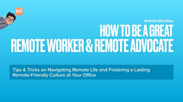 Working remotely brings a lot of flexibility to the workday. It also provides a lot of new challenges that can become difficult or even overbearing if we don't learn to navigate them. Even more, these challenges become worse when we begin the transition from "fully remote" to "partially remote". As someone who has worked remotely for over two years now, Byron Delpinal will provide the tips and tricks he's learned the hard way on how to be successful working at home, as well as how to become a great remote advocate when folks start returning to the office to ensure you can create and maintain a remote-friendly culture going forward.