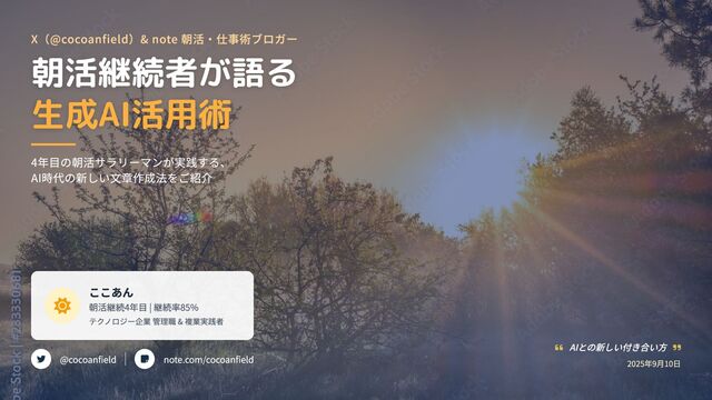 対話式アプローチ AIに記事を書かせるのではなく 「自分に取材してもらう」革新的発想 「AI取材」がもたらす4つの革新点 「記事作成代行」から「インタビュアー」へ AIの役割を執筆者からインタビュアーに変更することで、あなたの知識や経験を効果的に引き 出すパートナーへと変化 対話形式で体験や思いを深く掘り下げる 一問一答を繰り返すことで、自分でも気づいていなかった考えや工夫が自然と言語化される過 程が生まれる 「自分らしさ」や「背景」が自然に反映 インタビュー内容をベースに記事が作成されることで、あなた独自の体験談や視点が記事全体 に織り込まれる 「楽しい」時間がクリエイティビティを刺激 質問に答える過程で頭の中が整理され、新たな気づきも得られる意外な効果。作業が楽しみに 変わる AI このテーマについて、あなたの経験から詳しく教えていただけ ますか? あなた 実は私の経験では、このアプローチが効果的でした。具体的 に言うと... AI なるほど、その点について更に深掘りできますか?