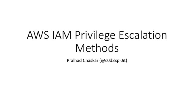 AWS IAM Privilege Escalation Methods Pralhad Chaskar (@c0d3xpl0it)