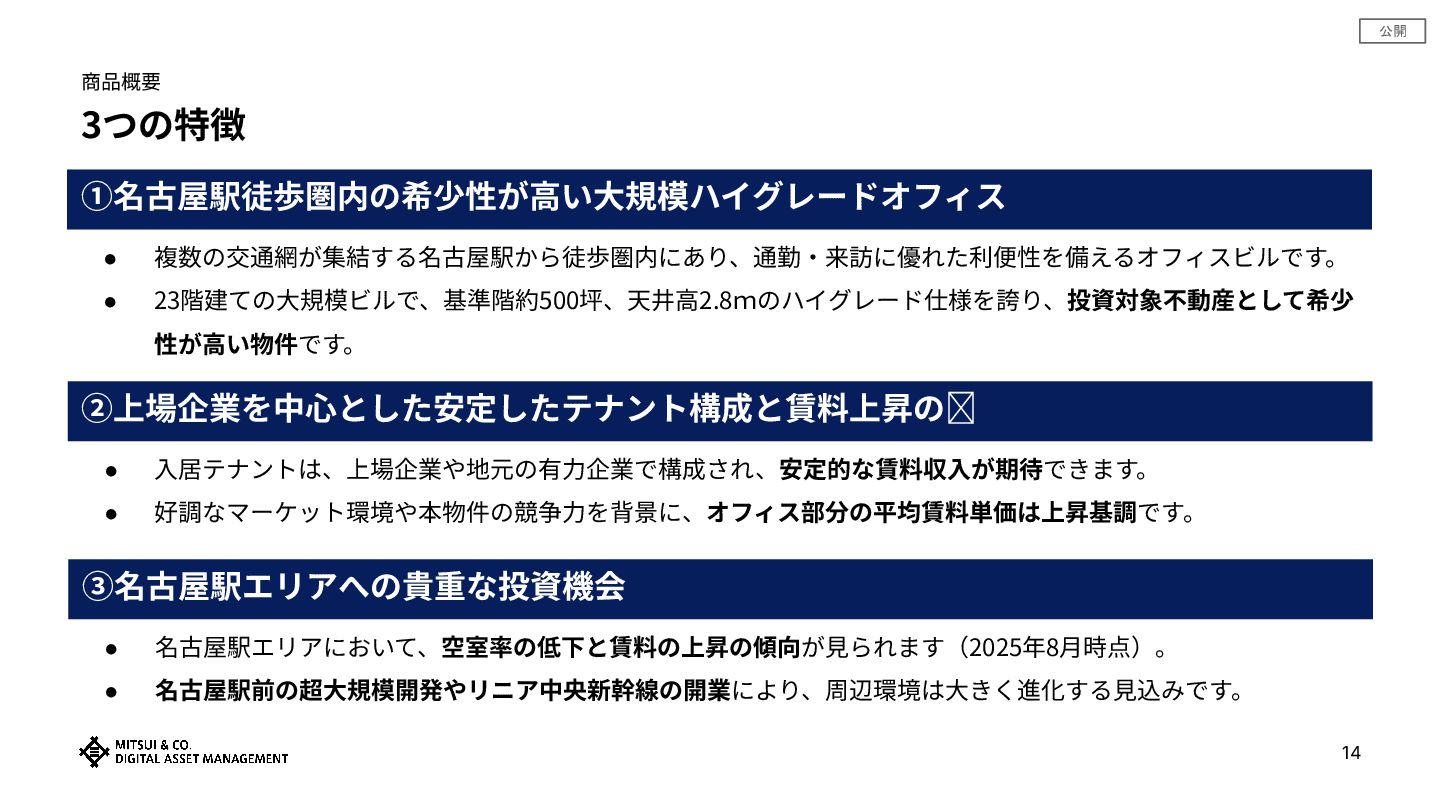 公開 1 「三井物産グループのデジタル証券 〜名古屋‧プライムオフィス〜(譲渡制限付)」 のご紹介