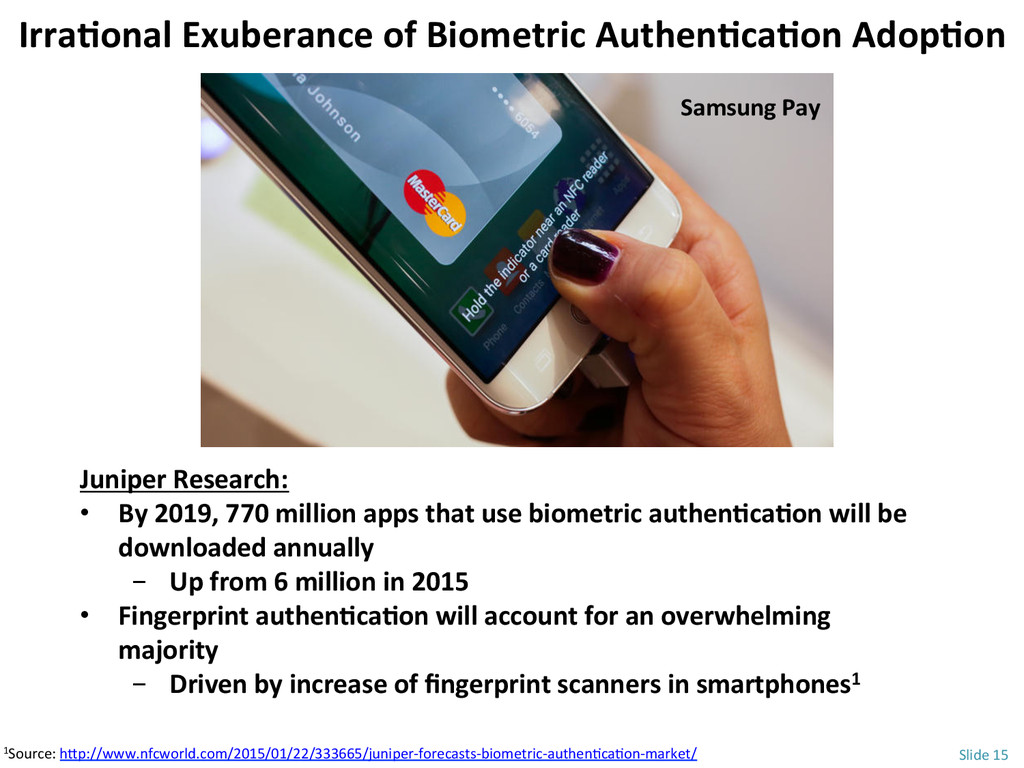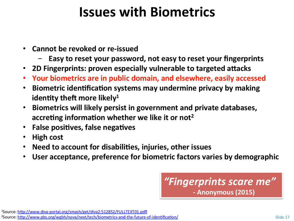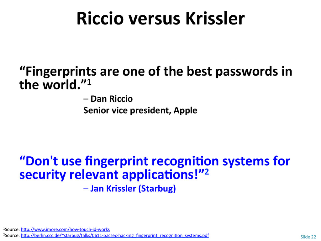 This is a case of marketing triumph over common sense. Even a sixth grader can grasp the problems with biometric authentication.