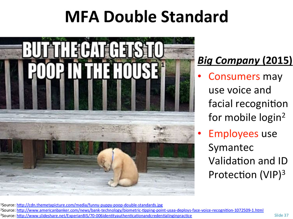 As German defense minister, Ursula von der Leyen can attest, fingerprints can be hacked. So can facial and other biometrics. Why, then, is biometric-based authentication so fashionable? Why did USAA just announce it is rolling out fingerprint and facial recognition for its customers (while it uses Symantec VIP for internal employees)? Did product management and marketing conduct a study that concluded customers feel safer with fingerprint and facial?