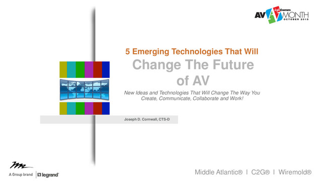 Moore's Law postulates that the number of transistors in a dense integrated circuit doubles approximately every two years. This has often been extrapolated to imply that our ability to handle large digital files and integrate ever more complex digital systems into our society also doubles at about the same rate. The reality is that some changes are happening even faster than that. The changes happening in the A/V community will have profound consequences on the expectations we have regarding communication technology. Over the next few years we will witness the final extirpation of 20th Century analog systems such as composite, component and VGA video signals. In the same way that the HDMI connector fundamentally disrupted the industry, emerging technologies such as USB Type C, USB 3.1, USB Power Delivery v2.0, HDBaseT, HDMI 2.0, DisplayPort 2.0 and embedded active chipsets in unexpected places will land an impactful blow. But unlike HDMI, these changes won't take 12 years to settle in. Prepare to see a new industry in half that time!