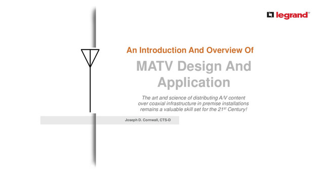 In this seminar participants will be learn about the contemporary RF spectrum, including recent changes that redefine the concept of a "channel." We will explore fundamental MATV concepts including RF power levels and the dBmV (decibel-millivolt) unit of measure, RF equalization, taps, splitters and the need to balance an MATV distribution system. From schools to office buildings to sports bars to residential installations, the importance of fully incorporating broadcast capabilities into any A/V design will only grow in importance. At the completion of this seminar, participants will have a solid understanding of why MATV is critical, how it has changed in recent years and what concepts must be mastered to turn opportunity into profit.