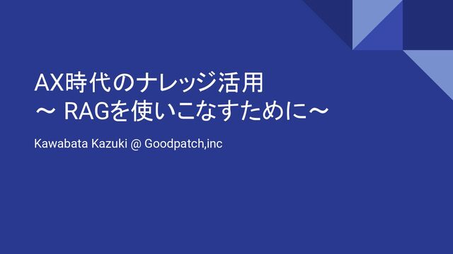 AX時代のナレッジ活用 〜 RAGを使いこなすために〜 Kawabata Kazuki @ Goodpatch,inc