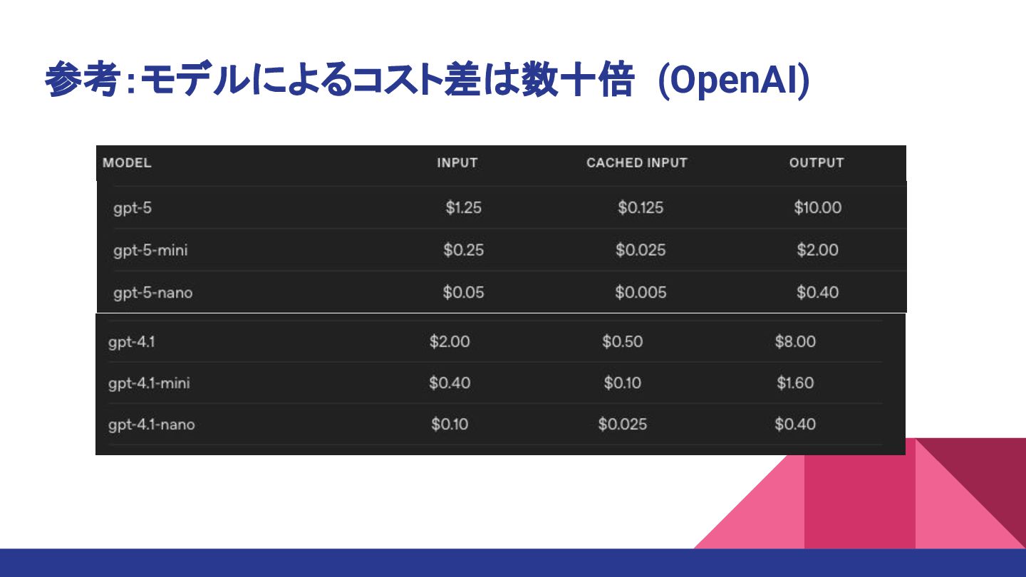 参考:モデルによるコスト差は数十倍 (OpenAI)